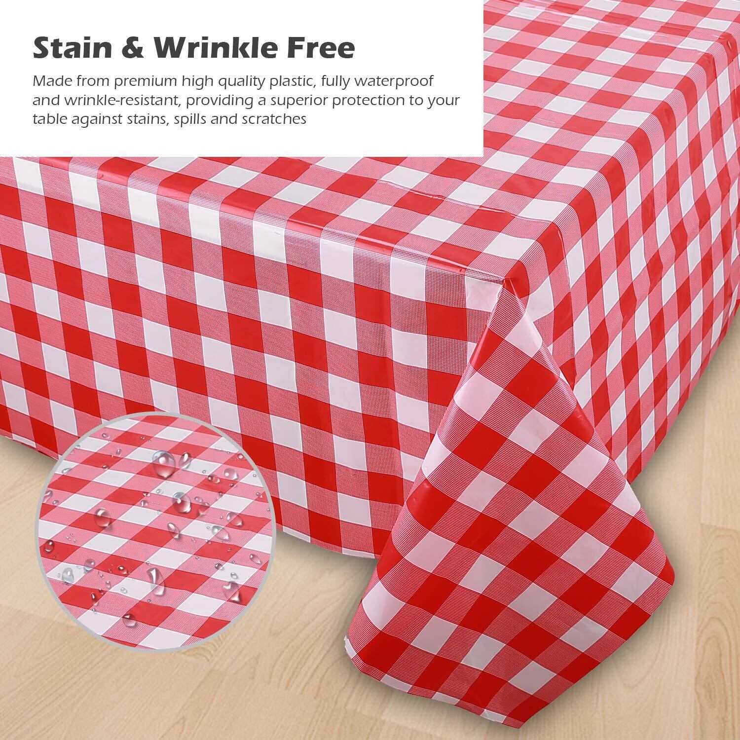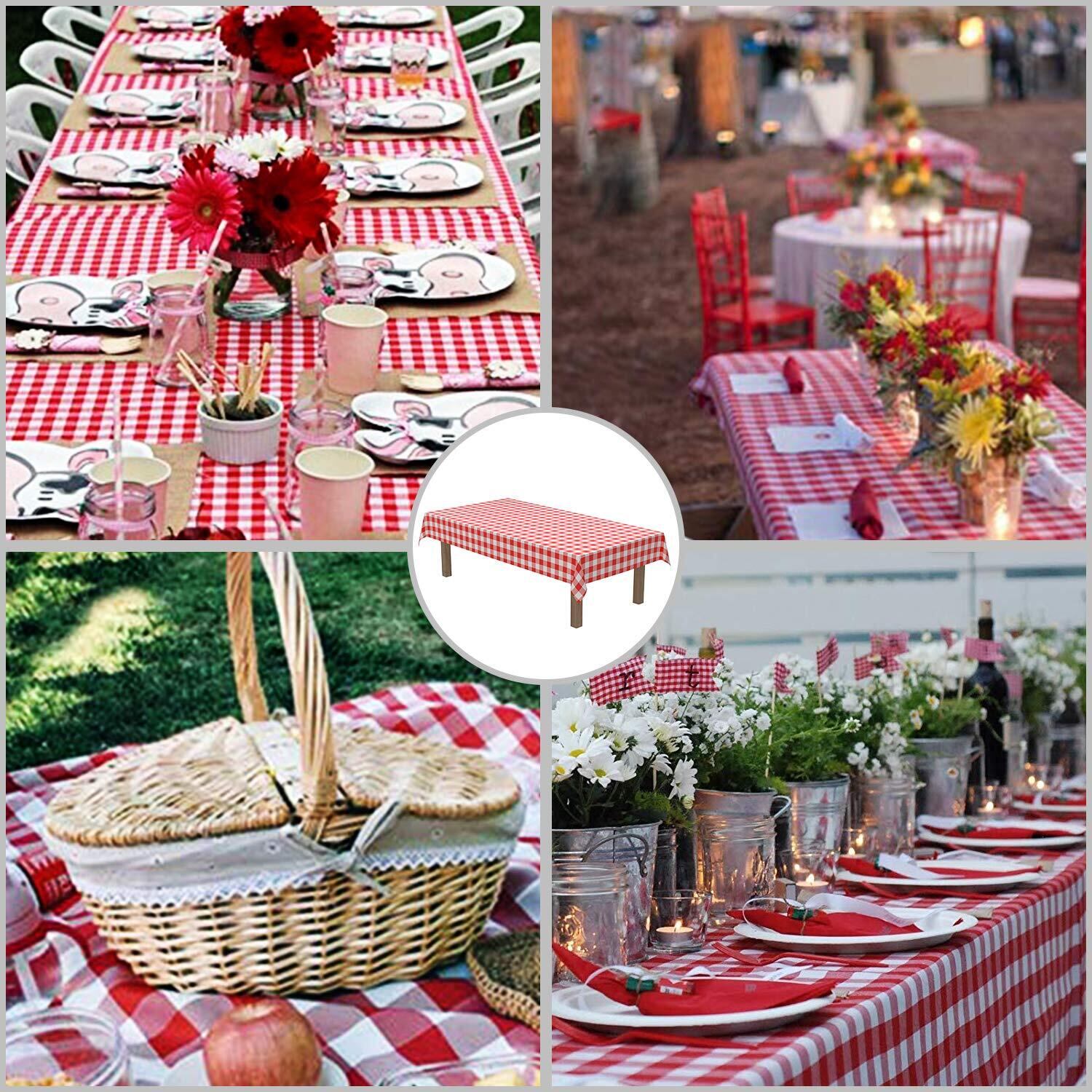 Puricon テーブルクロス 使い捨て 6枚 137 x 274cm 赤と白のギンガムチェック テーブルクロス 長方形 パーティー 結婚式など用 –レッドチェック
