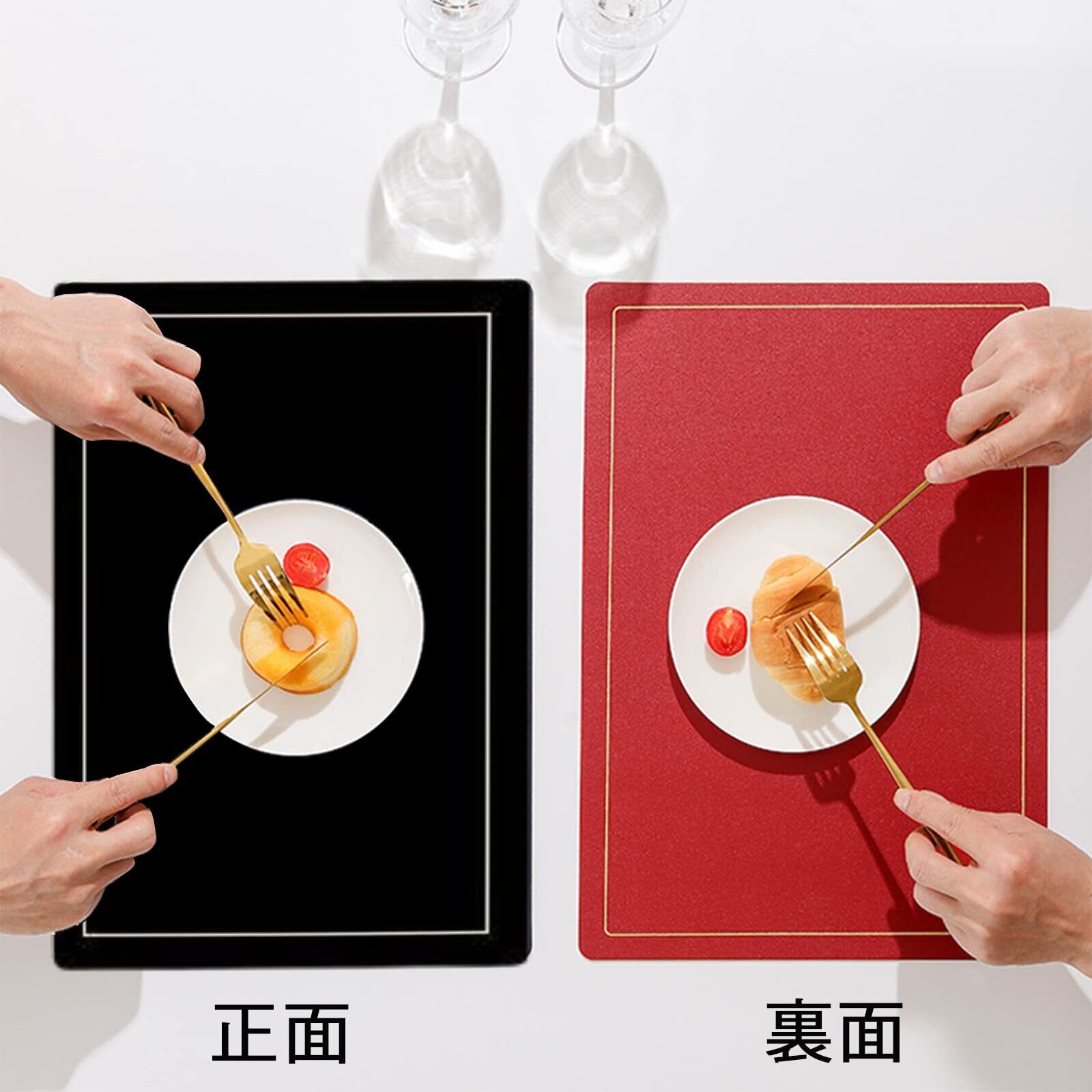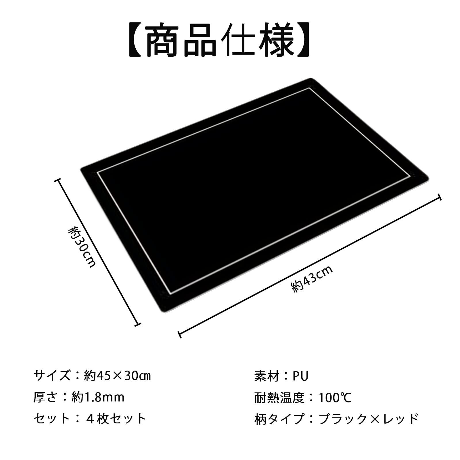 [Senteria]ランチョンマット キッチンマット おしゃれ 無地 PUレーザ 北欧 両面 方型 防水 滑り止め 汚れ防止 断熱 保護 お手入れ簡単 拭き取り可能 調理台 食卓 4枚セット「45*30cm」(レッド×ブラック) | kki