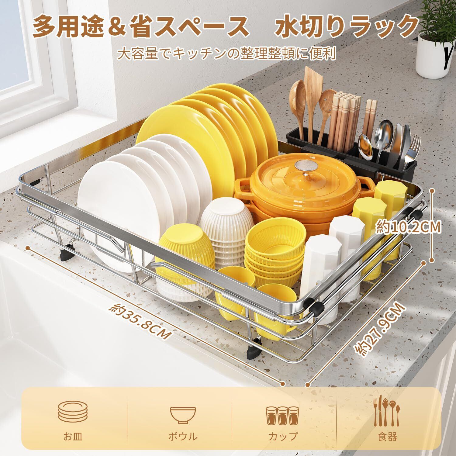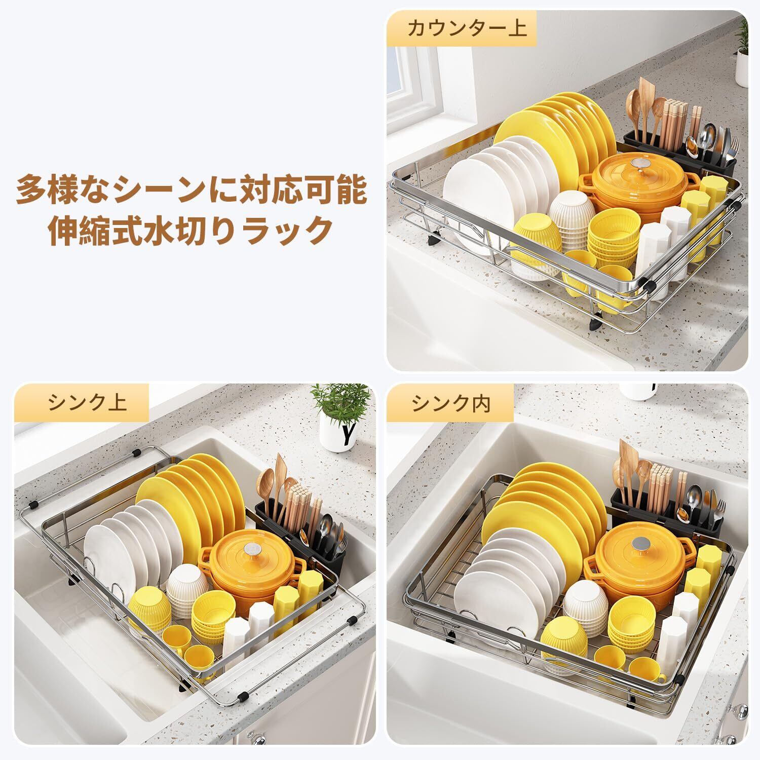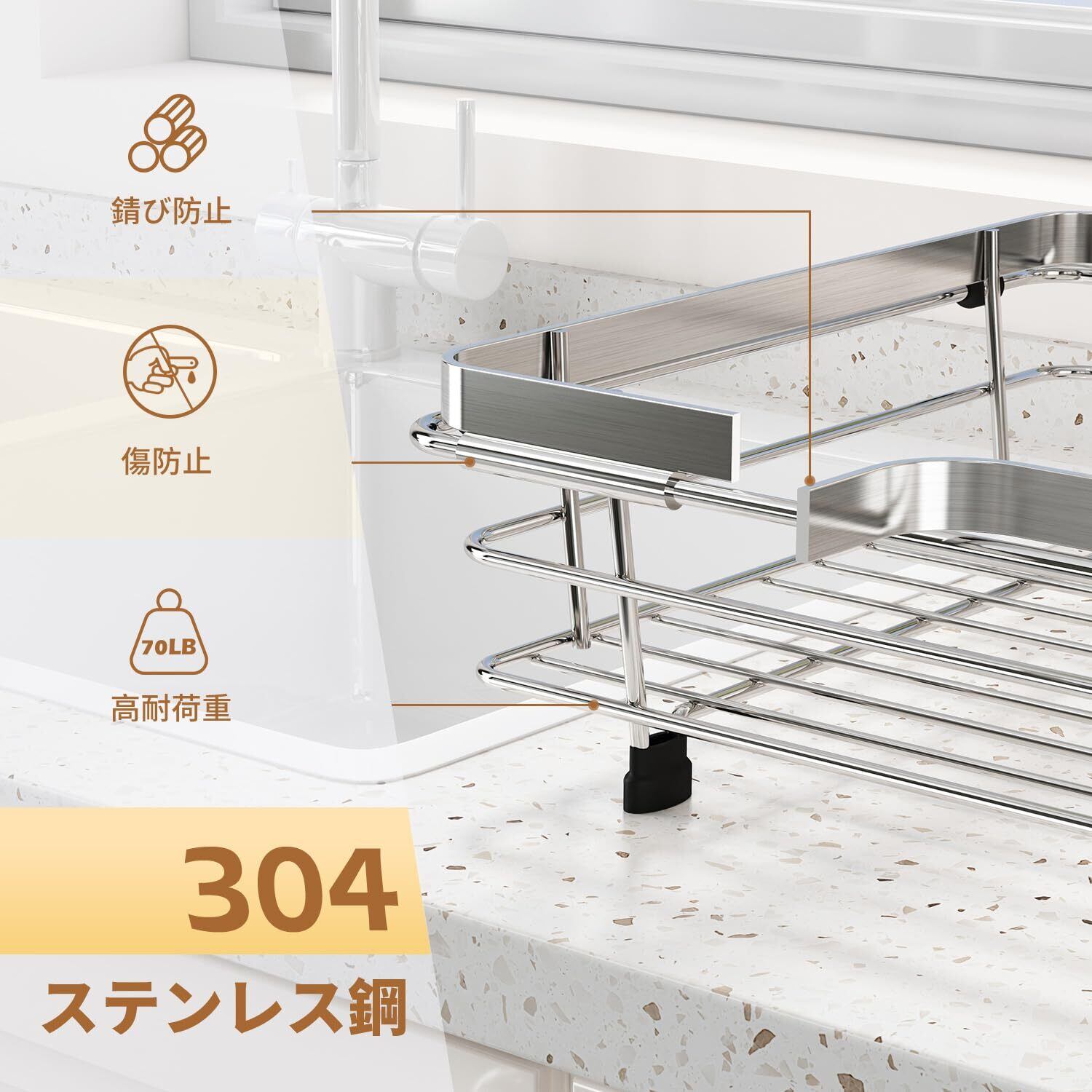 MAJALiS 水切りラック ミズキリラック 食器 ステンレス スリム シンク上 シンク内 伸縮式水切りかご 乾燥ラック 水切りかご 食器乾燥棚 304ステンレス製 自動排水 大容量 錆び防止 高耐荷重 シルバー | kki