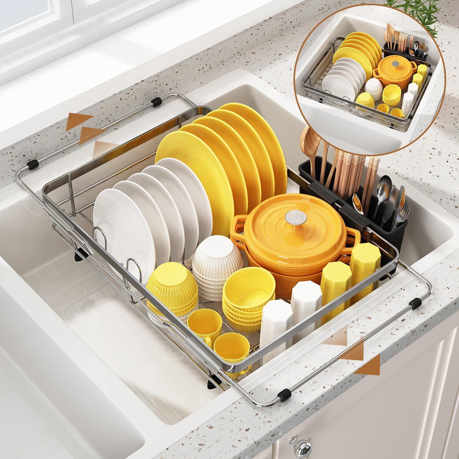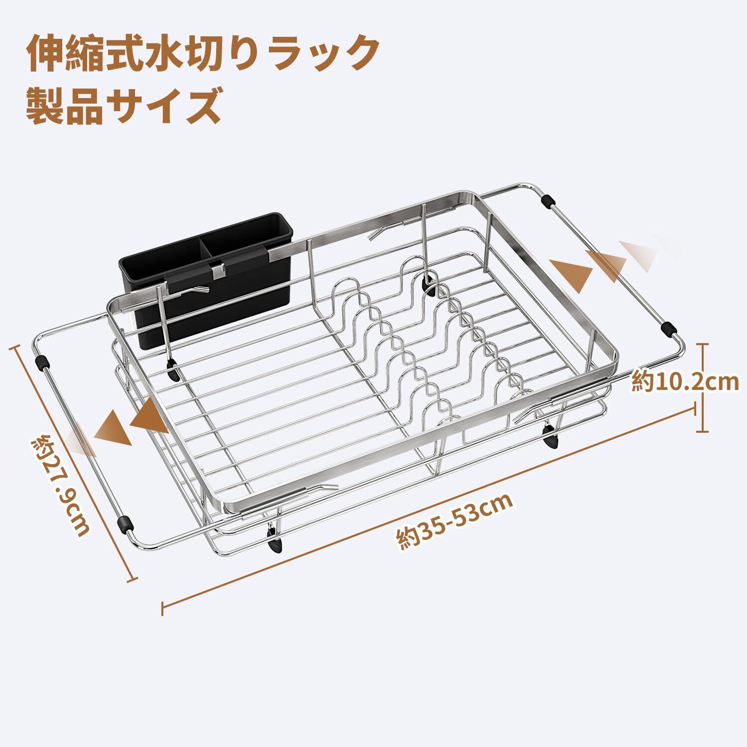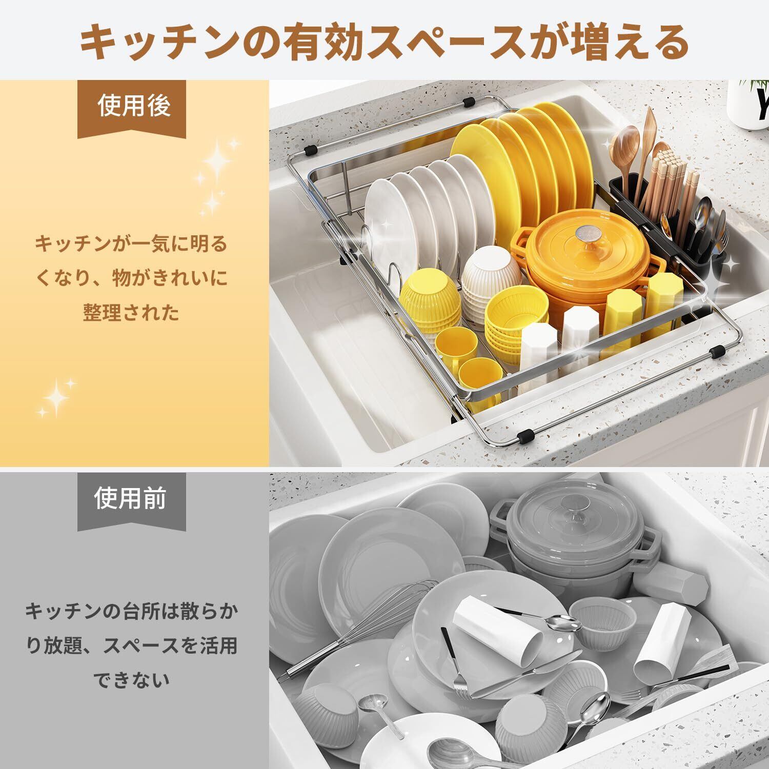 MAJALiS 水切りラック ミズキリラック 食器 ステンレス スリム シンク上 シンク内 伸縮式水切りかご 乾燥ラック 水切りかご 食器乾燥棚 304ステンレス製 自動排水 大容量 錆び防止 高耐荷重 シルバー | kki
