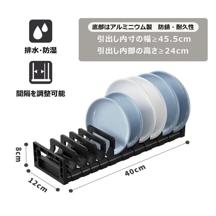 ディッシュスタンド 間隔調整可能 ディッシュラック 立て 皿立て 水切りラック お皿 収納 キッチン 台所 引き出し内 シンク下 食器棚下 片手でサっと出せる 抗菌 長さ40CM プラスチック+アルミニウム ブラック HOGAWAY | kki