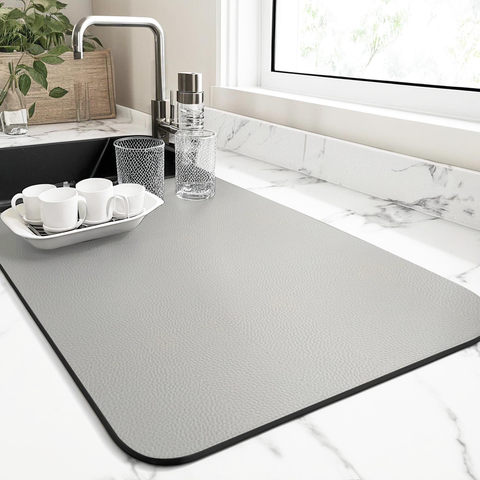 水切りマット 珪藻土 食器 吸水マット ソフト 洗える 速乾吸水 抗菌 滑り止め 丸めて収納 耐油性 食器乾燥 お手入れ簡単 (シルバーグレー, 40X60CM)