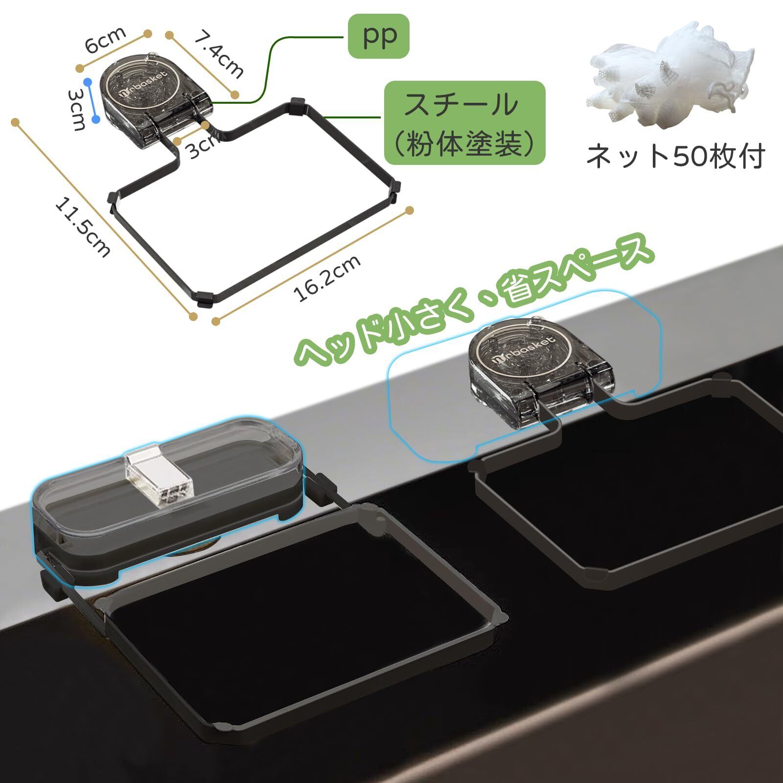 三角コーナー 強力吸盤 水切りネットホルダ 生ゴミ処理 水切りネット50枚付き ブラック