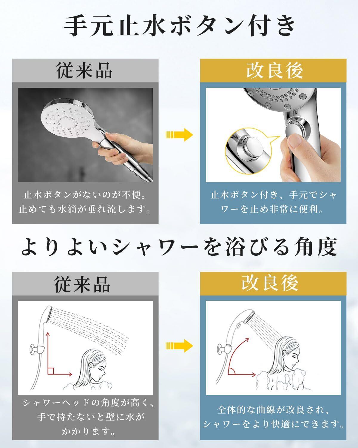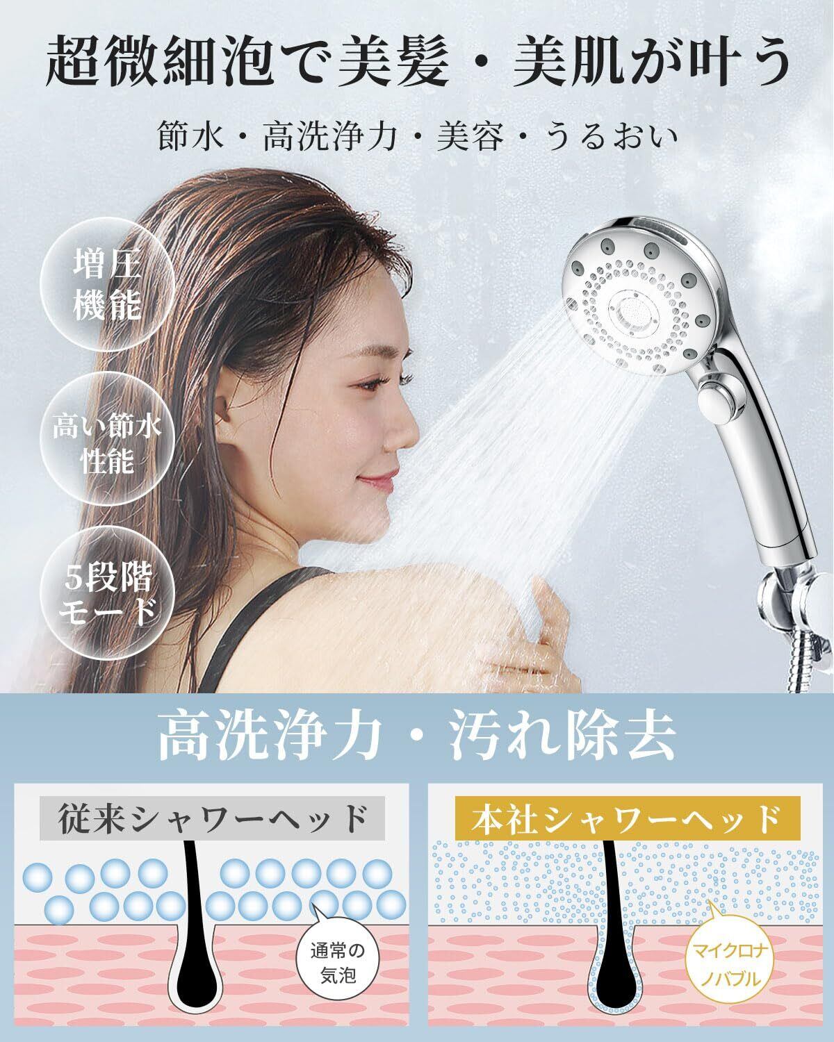 Kungix シャワーヘッド マイクロナノバブル 5段階モード 手元止水 ミストシャワー 極細水流 高洗浄 保温 保湿 肌ケア 美髪 節水シャワーヘッド 高水圧 国際汎用基準 4種類アダプター付き 水漏れ防止 取り付け簡単(シルバー) | kki