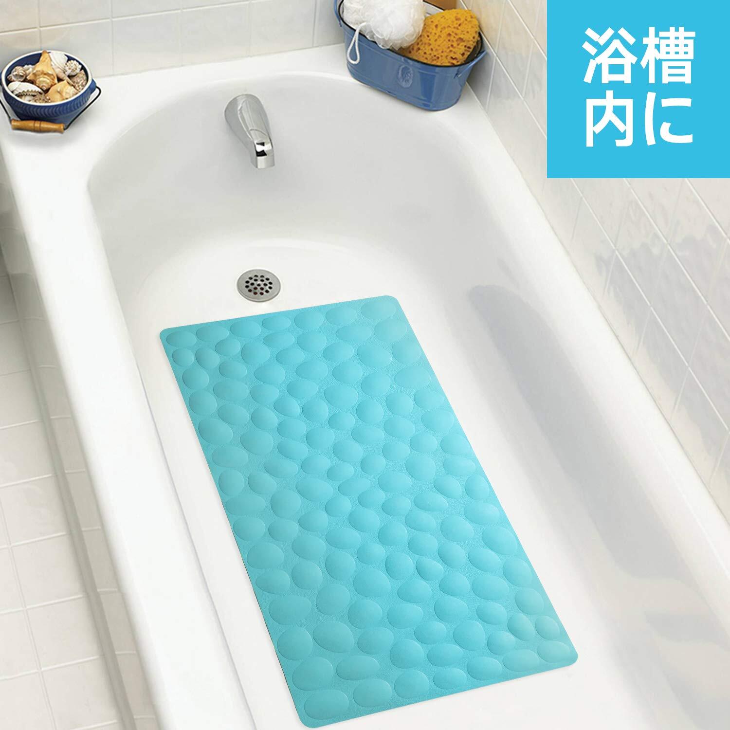 お風呂 すべり止めマット 浴槽 40×80cm ストーン柄 天然ゴム製 お風呂マット 介護 転倒防止 吸盤付き 柔らかい (ブルー)
