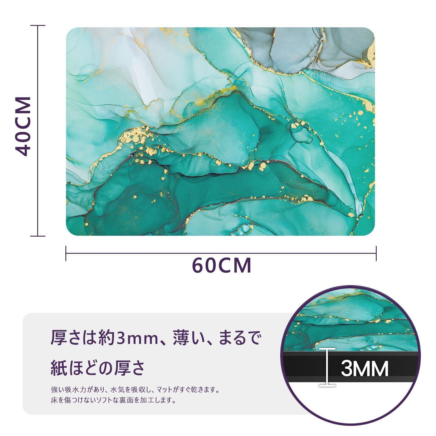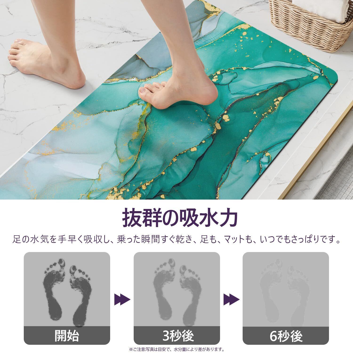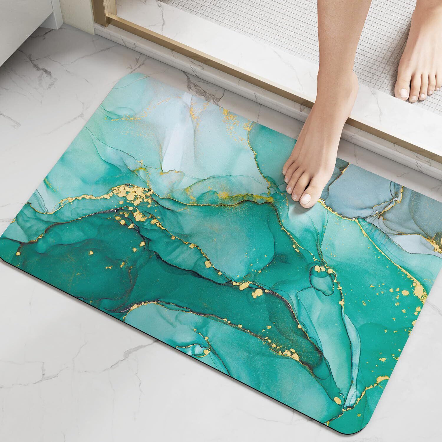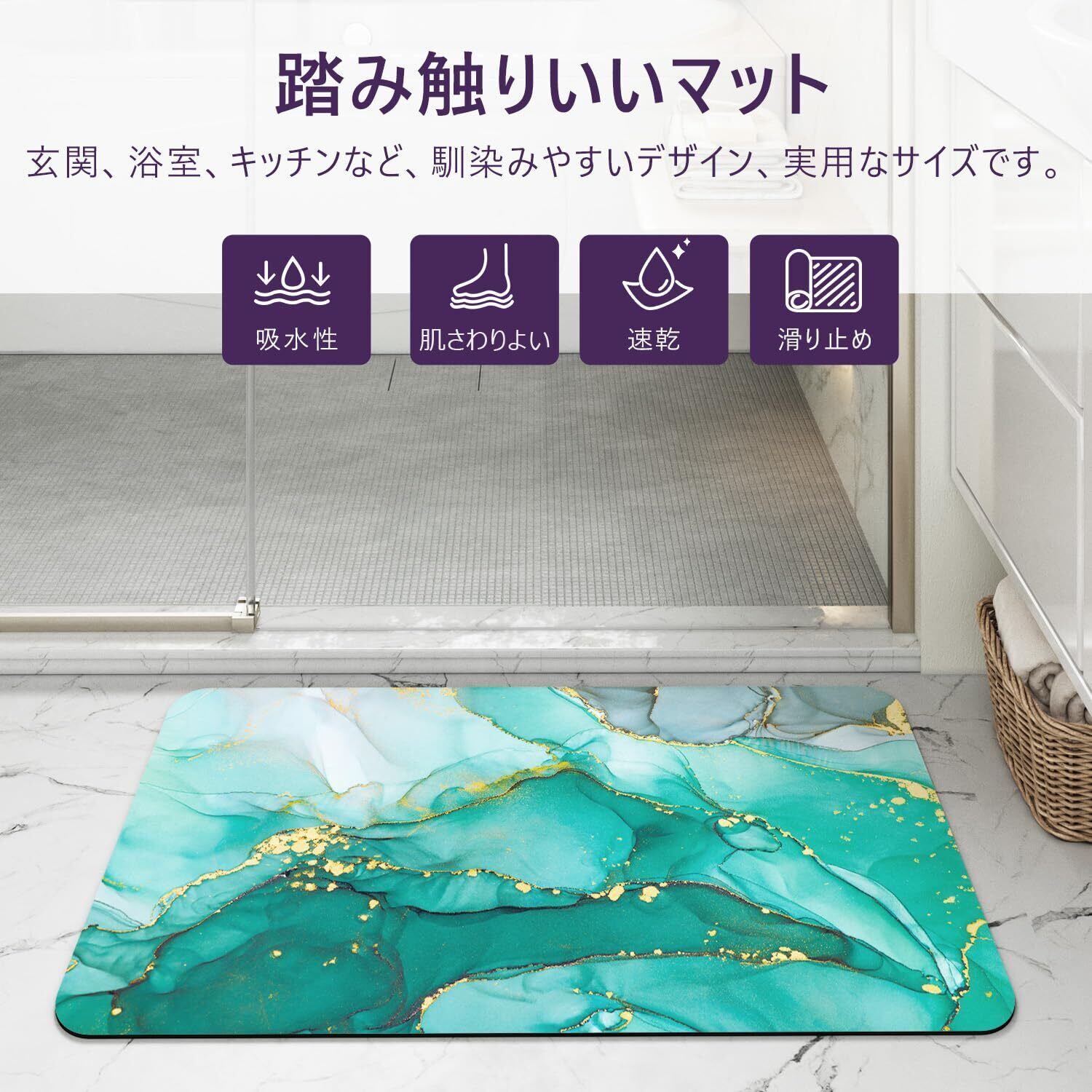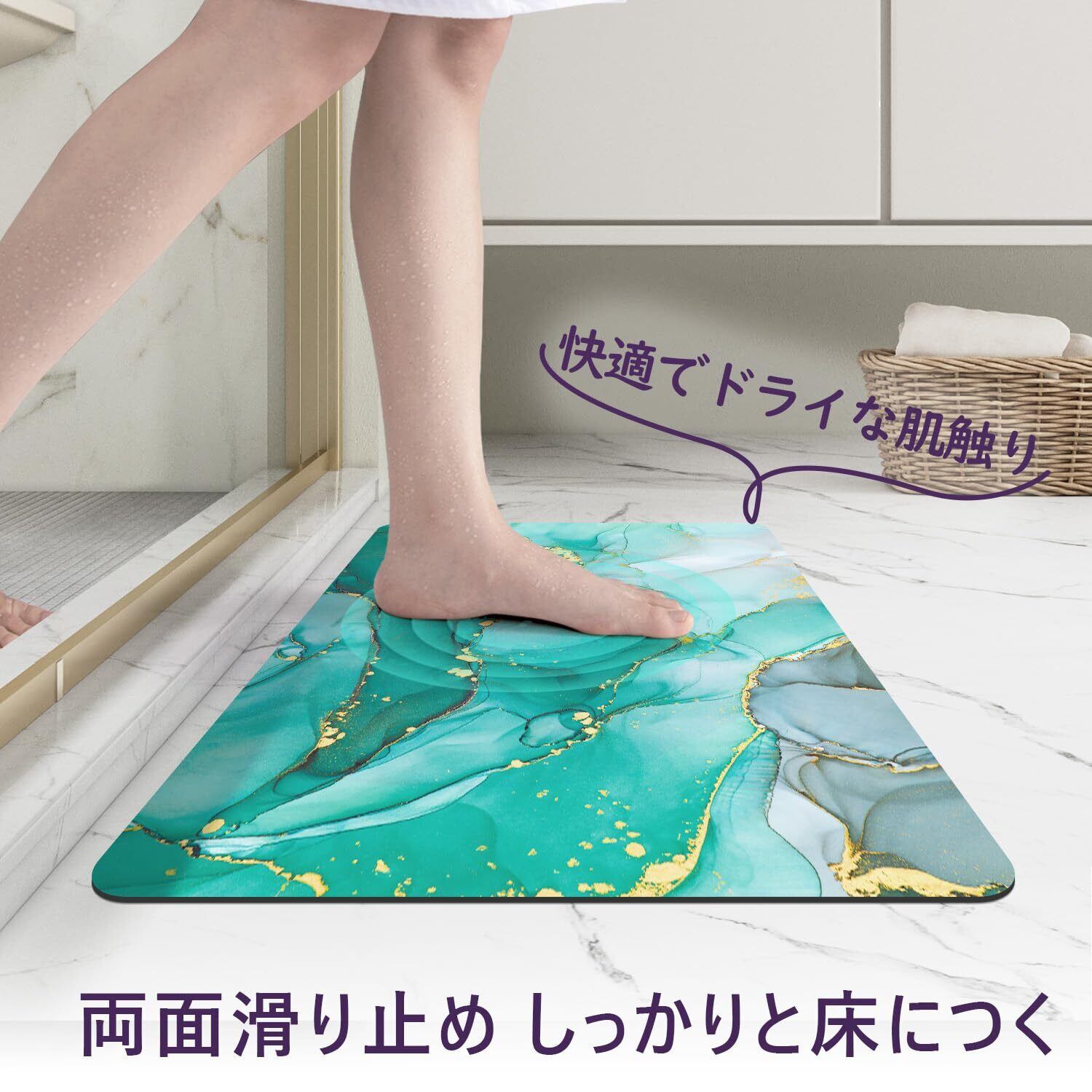DEXI お風呂マット おしゃれ バスマット 吸水 速乾 洗える 滑り止め 安心 ソフト 足拭きマット お手入れ簡単 収納便利 多層構造 通気 割れない 清潔 浴室 洗面所 バスルーム (60x40cm, グリーン) | kki