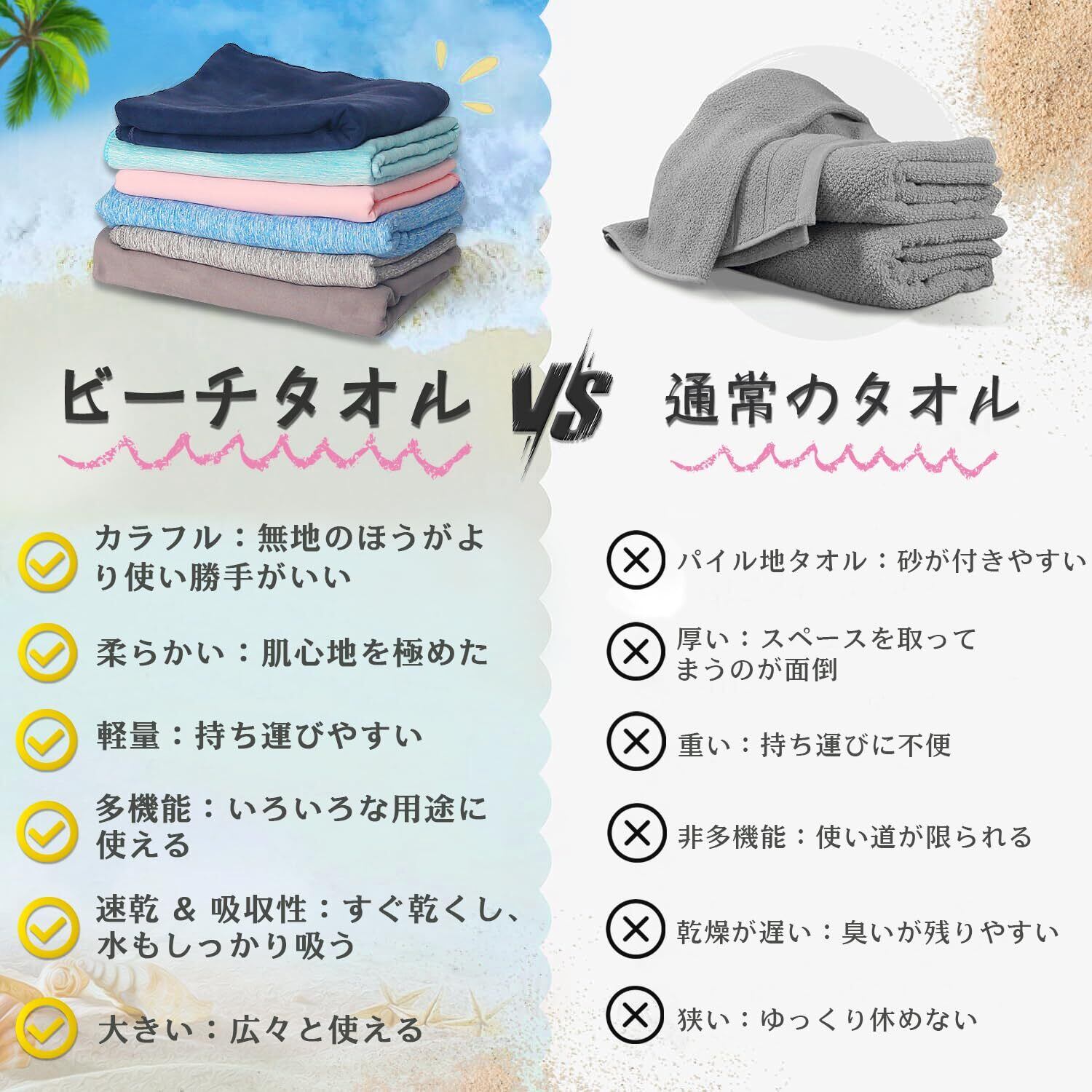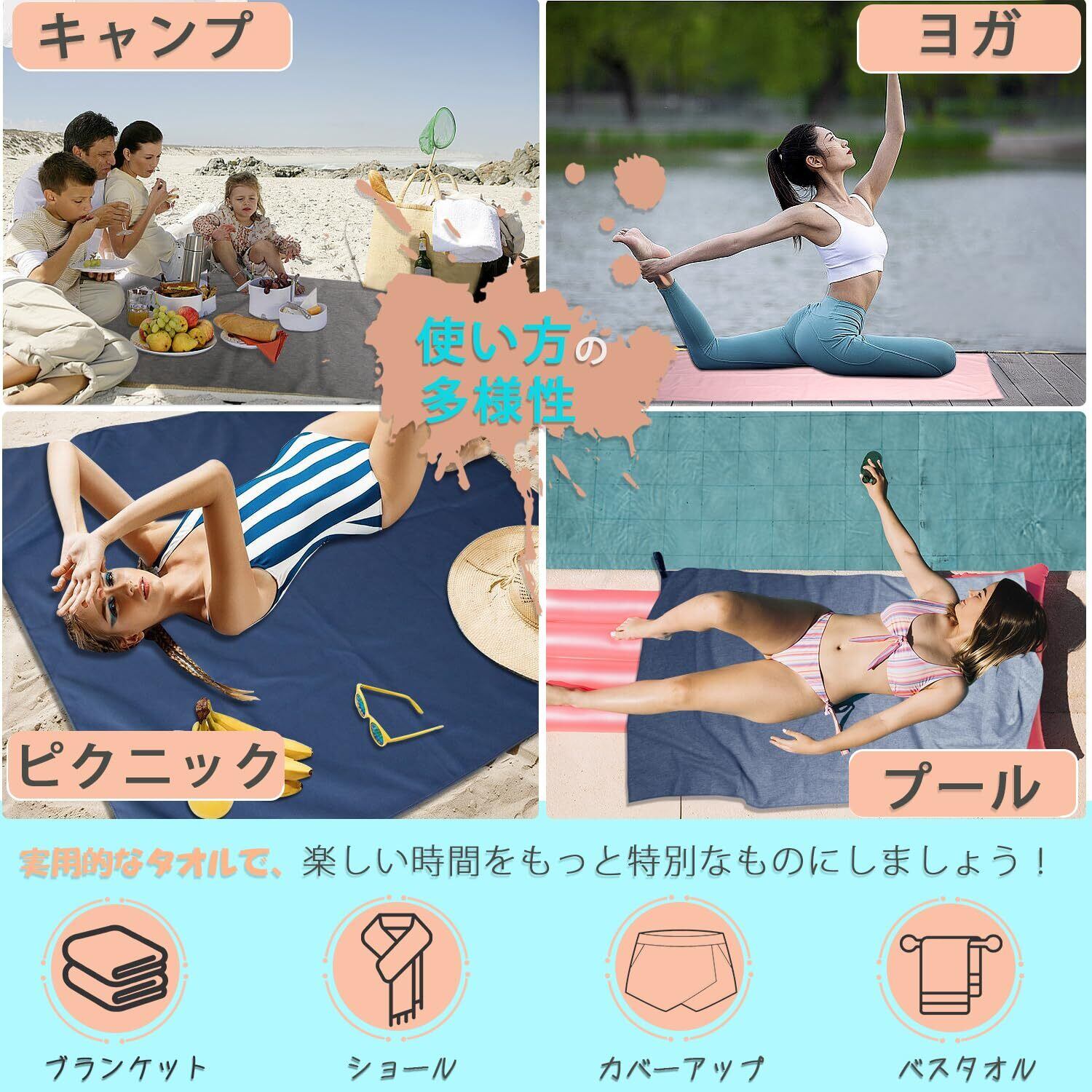 速乾 ビーチタオル ビーチマット バスタオル 80×180cm ソファ ブランケット おしゃれ 砂がつかない ビーチブランケット 大人 海水浴 かわいい すぐ乾く (カチオン グレー, 80×180cm) | kki