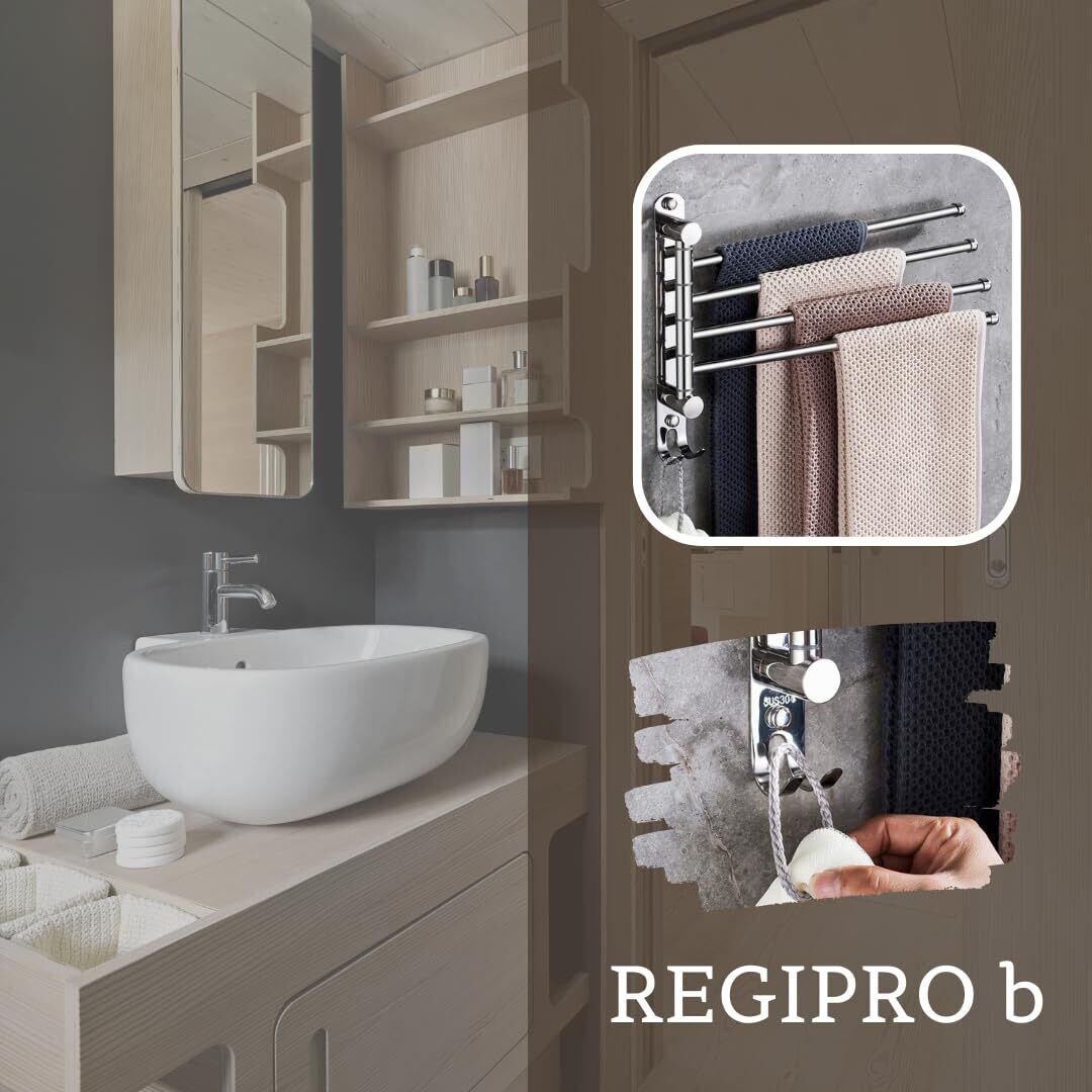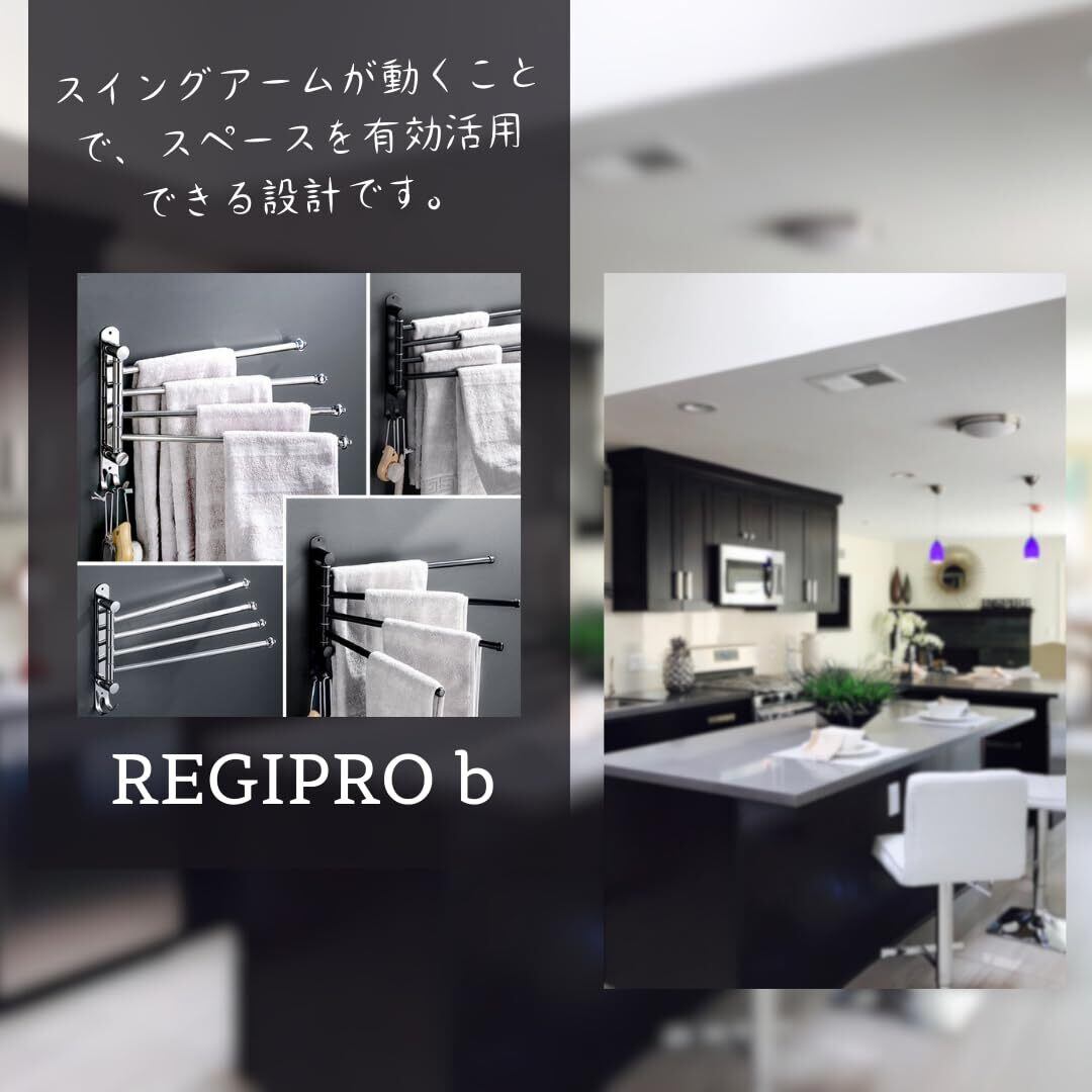 レジプロb スイングアーム式 タオルハンガー SUS304 ステンレス製 壁掛け ネジ付き シルバー (1本タイプ)