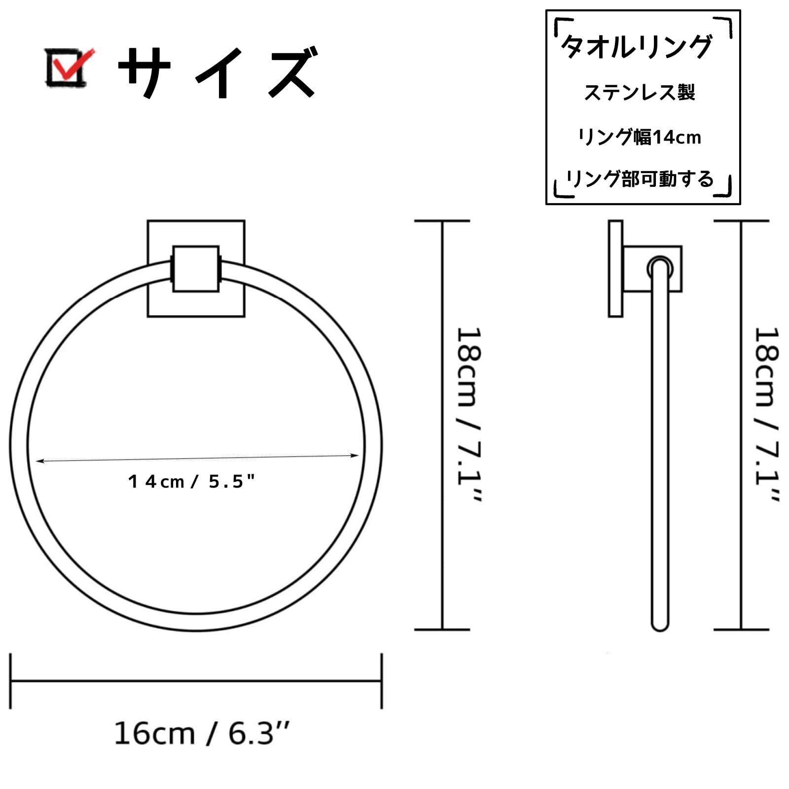 【KWQKEM】タオルリング タオル掛け おしゃれ タオルホルダー タオルハンガー 180°回転 シンプルモダン ステンレス 壁掛け 収納 トイレ・ 洗面所 ・キッチン用 ネジ付き リング内径140mm | kki