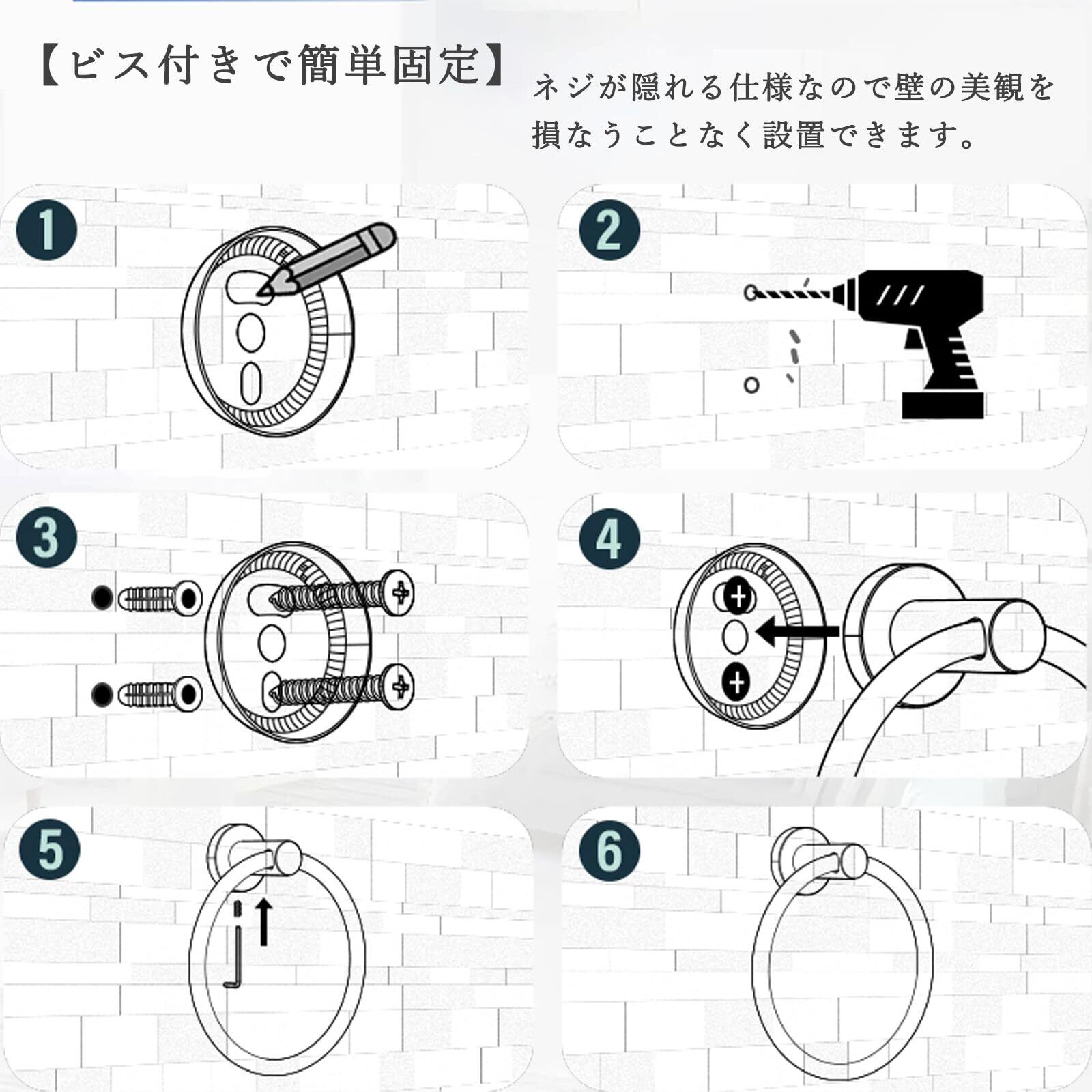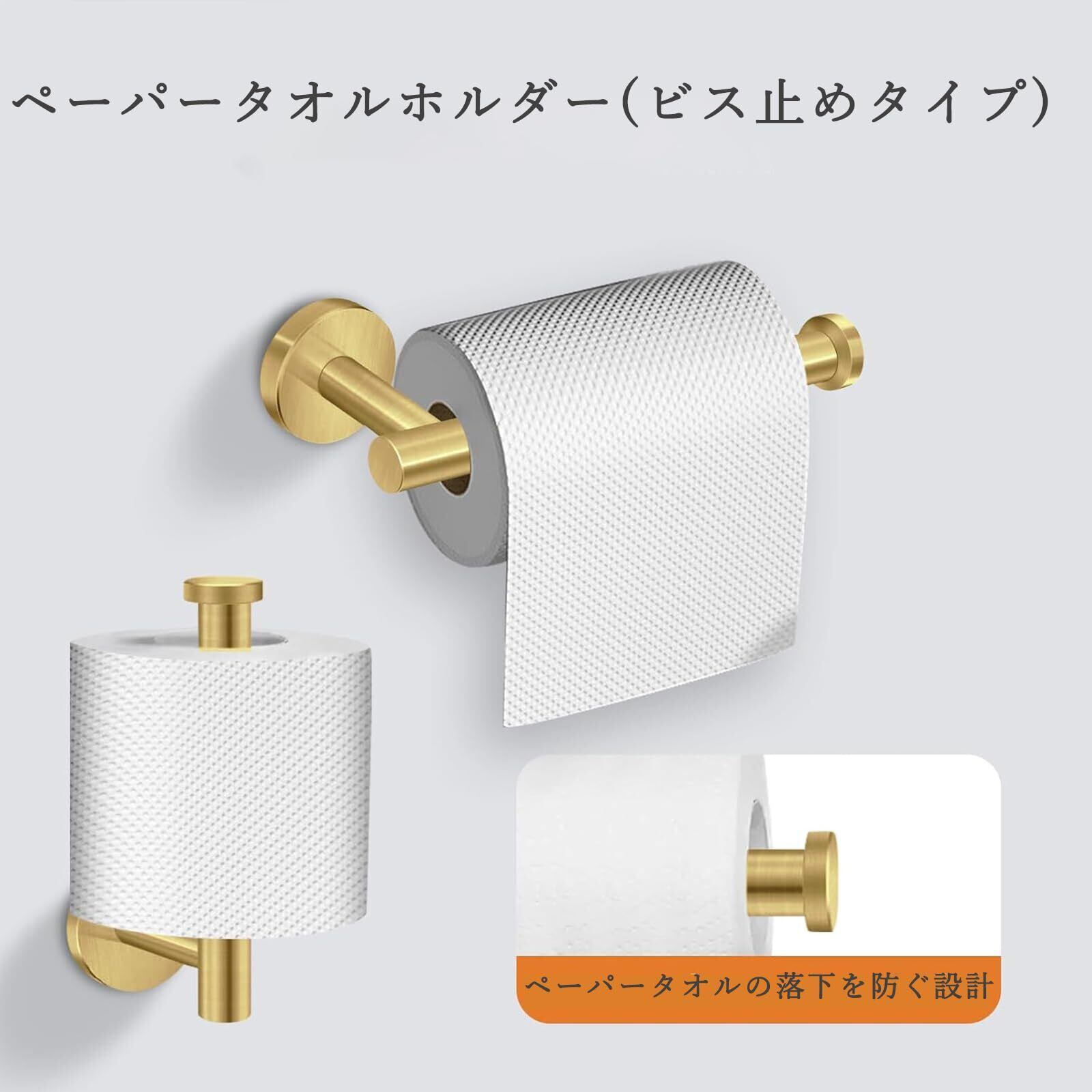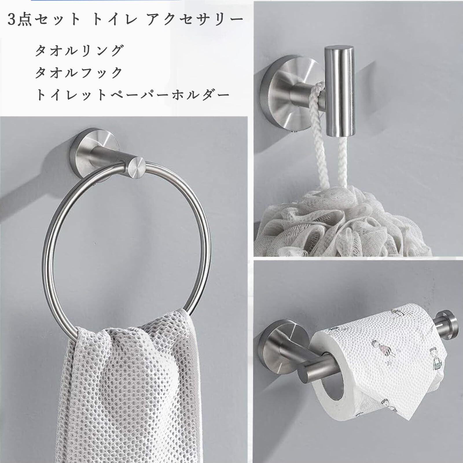 3点セット おしゃれ ステンレス トイレットペーパーホルダー タオルリング タオルフック 壁掛けフック タオルハンガー ビス止め キッチン 洗面所 トイレ 浴室 壁掛け バスルームアクセサリー ゴールド ネジ付き【セット買い】 (3点セット-タオルリング-ゴールド) | kki