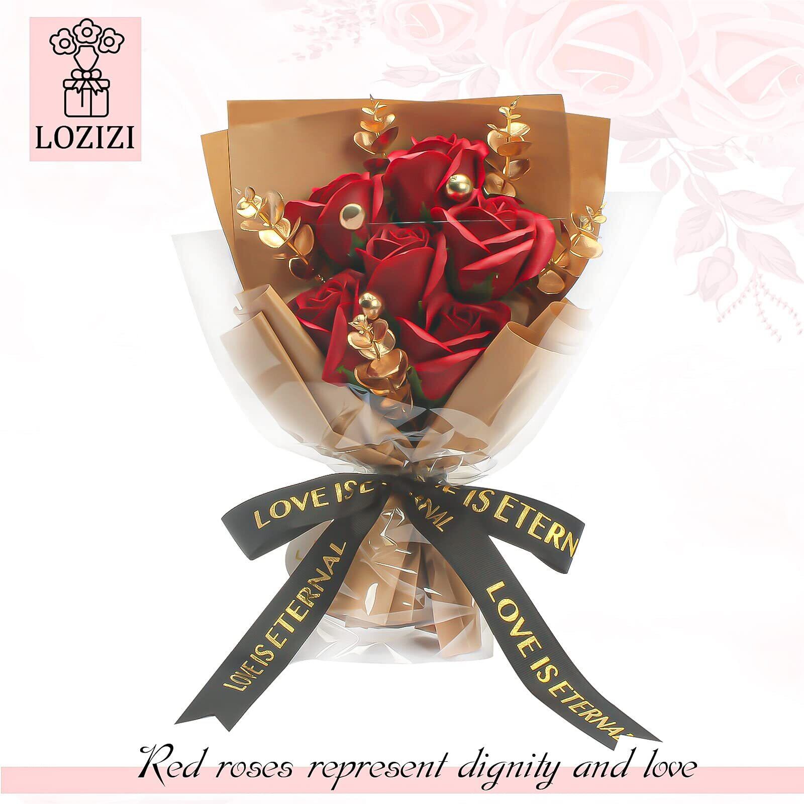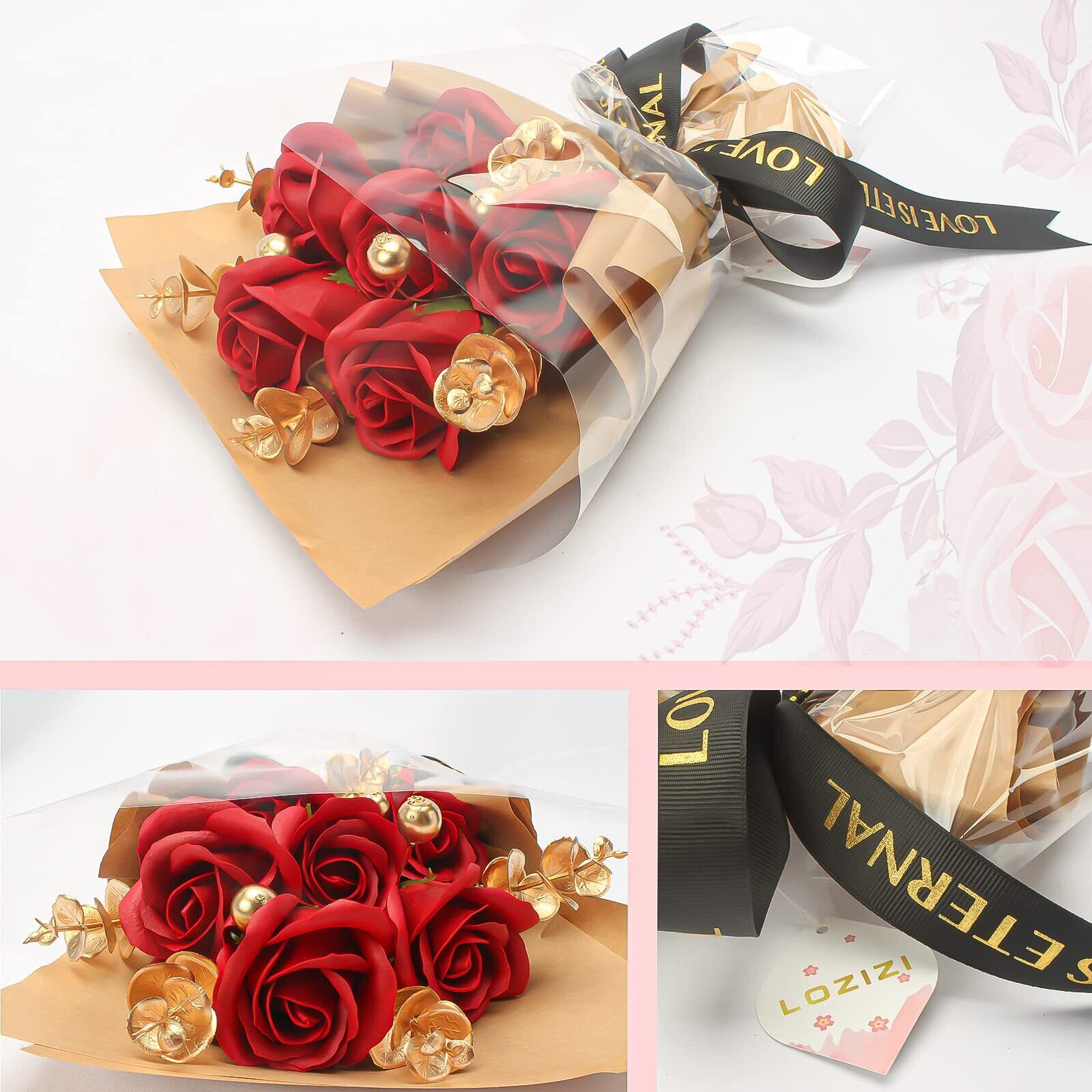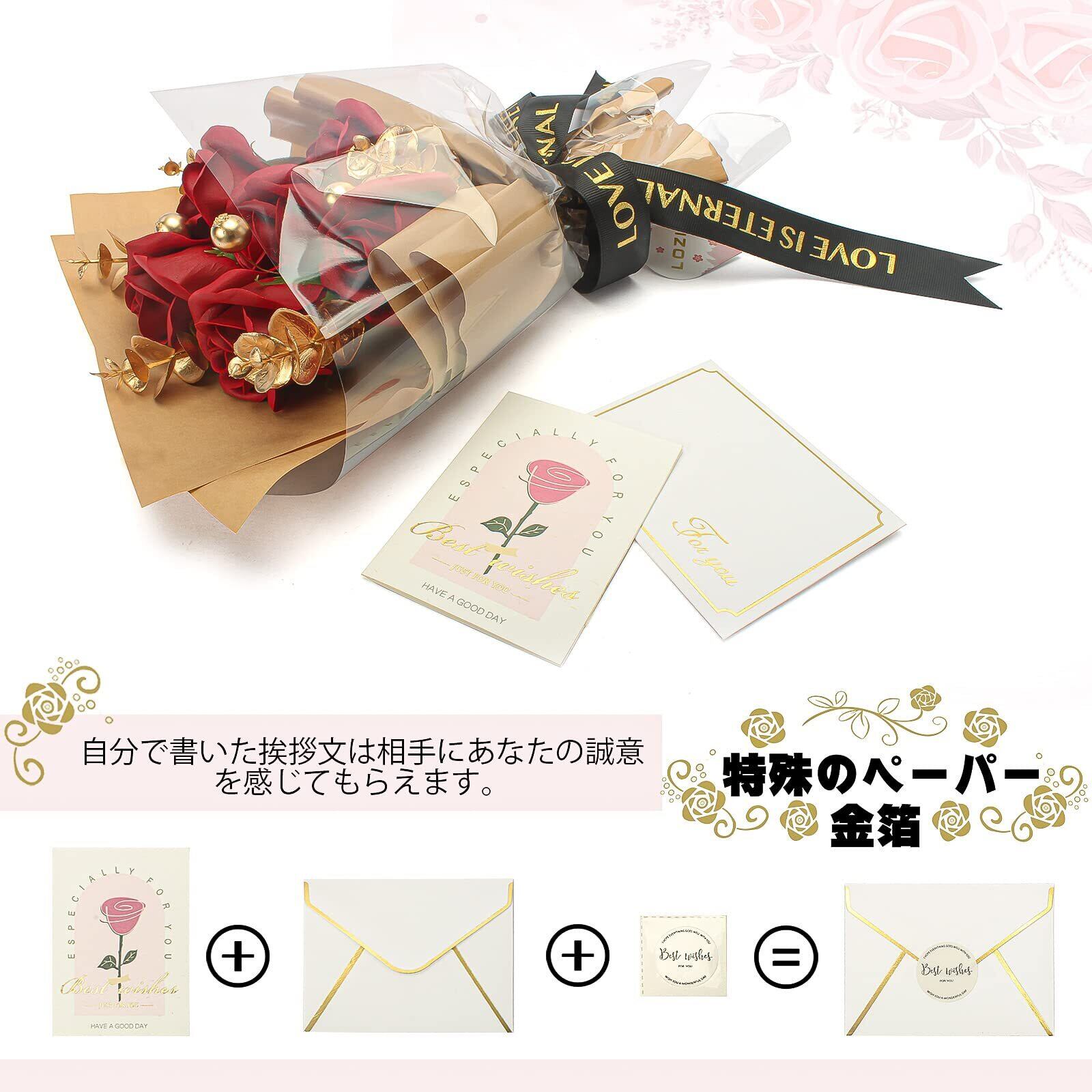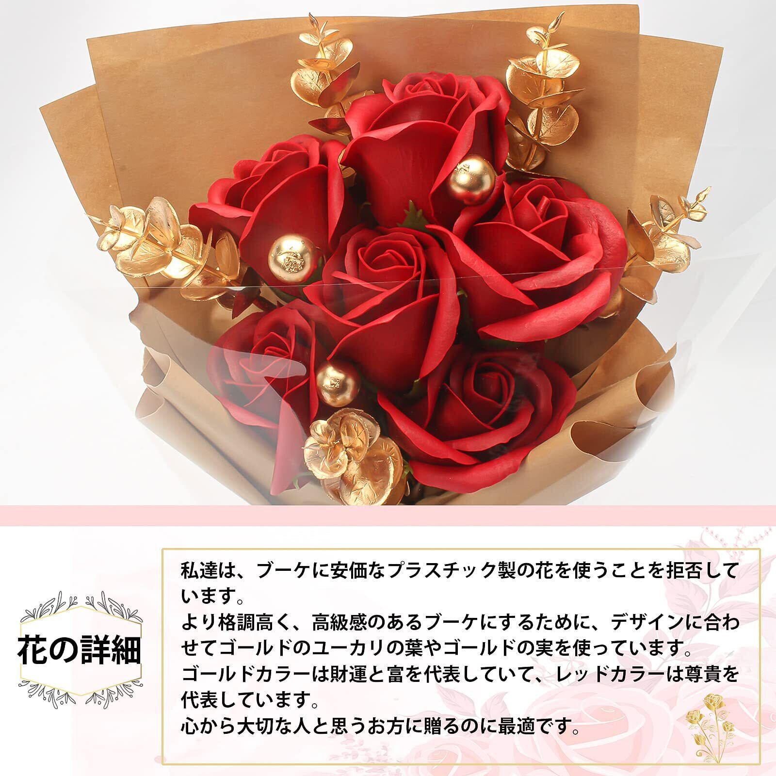 ソープフラワー 赤いバラ 花束 造花 枯れない花 人気 クリアボックス、メッセージカード付き、手提げ付き