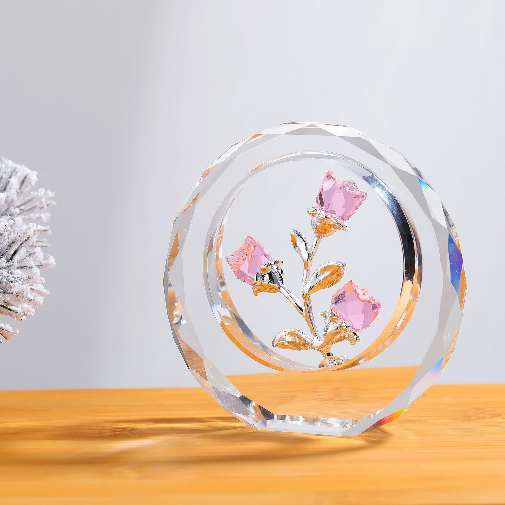 クリスタルピンクローズ 結婚記念日プレゼント 女性 人気 K9クリスタルピンクバラギフト バラの花束 薔薇 置物 誕生日プレゼント 結婚祝い バレンタインデー 母の日 彼女 妻 母への贈り物 | kki