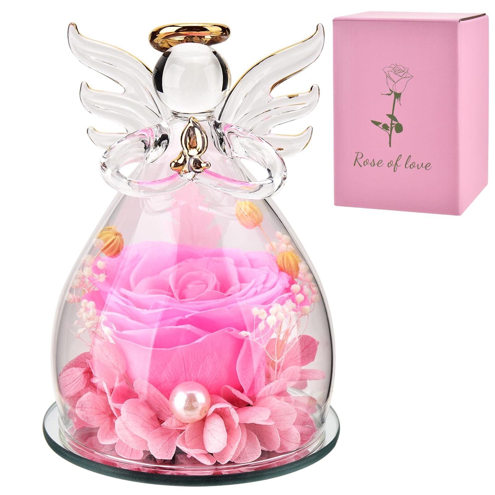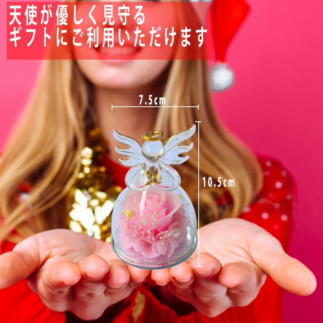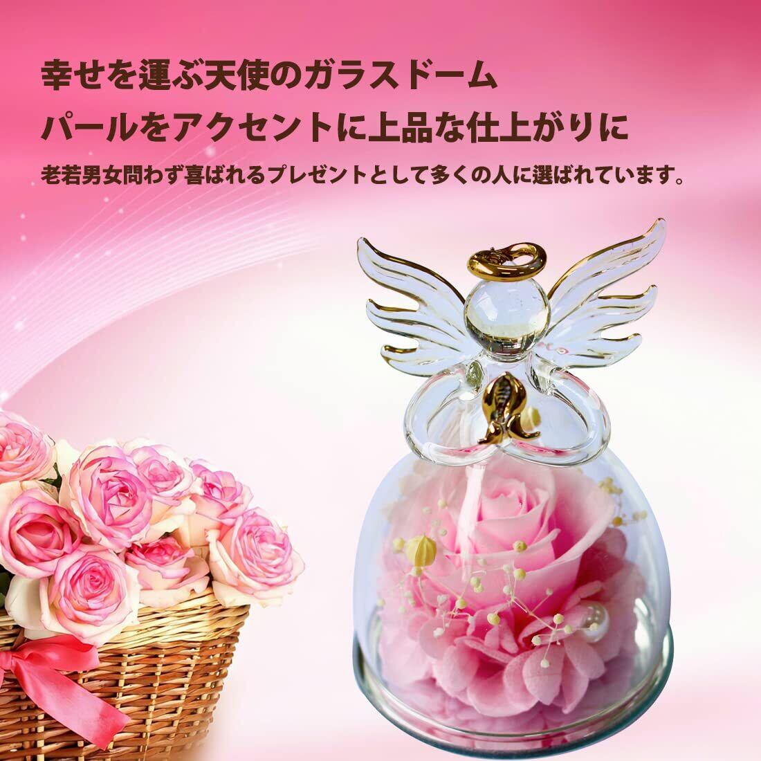 プリザーブドフラワー ギフト 天使 ガラスドーム バラ 贈り物 - 枯れない花 ブリザードフラワー 3〜5年長期保存 メッセージカード付 プレミアムボックス入 誕生日プレゼント 女性 母の日 退職祝い 還暦祝い 結婚記念日 (ピンク) | kki