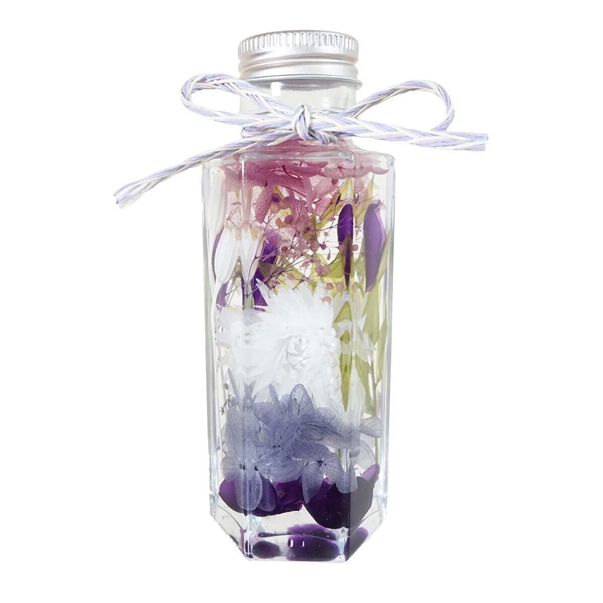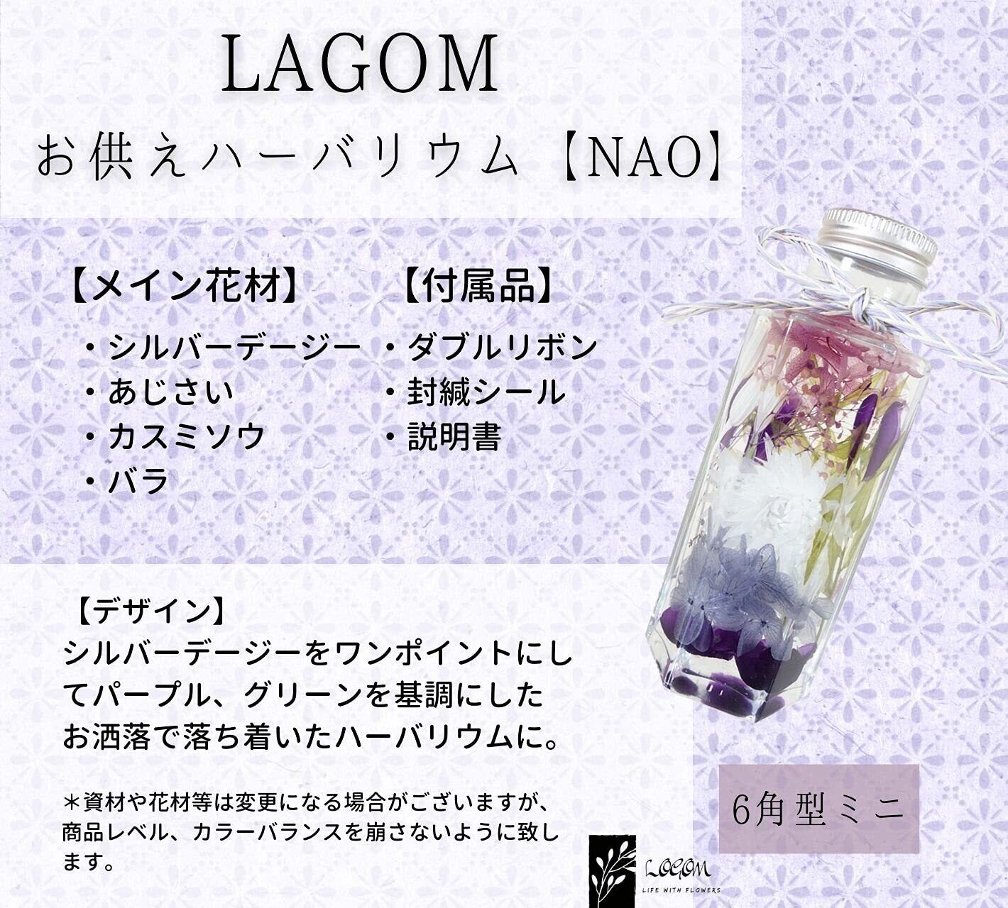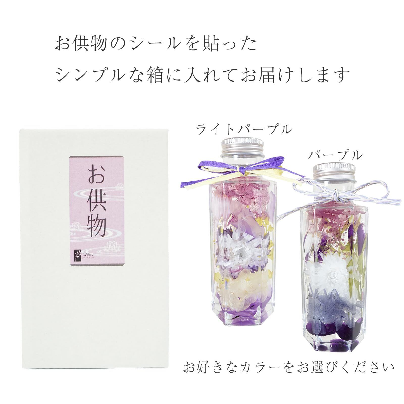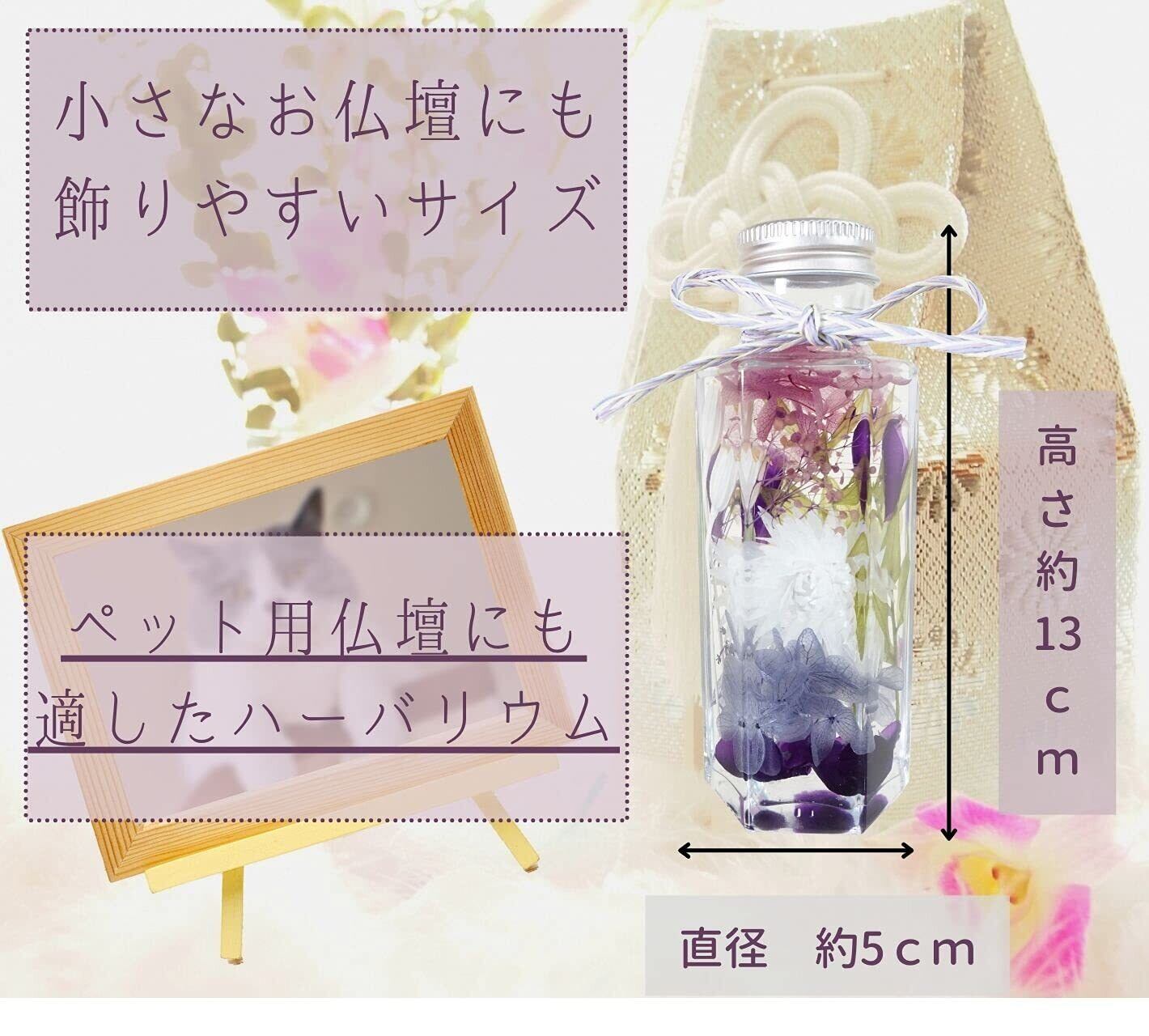 LAGOM お供え ハーバリウム 【NAO】喪中見舞い ペット供養 お悔やみ 仏壇用 枯れない花 法事 線香 セット 仏花 四十九日 1周忌 お盆 お彼岸 ブリザードフラワー 仏花 日本製 (6角型(ミニ), パープル&線香セット) | kki