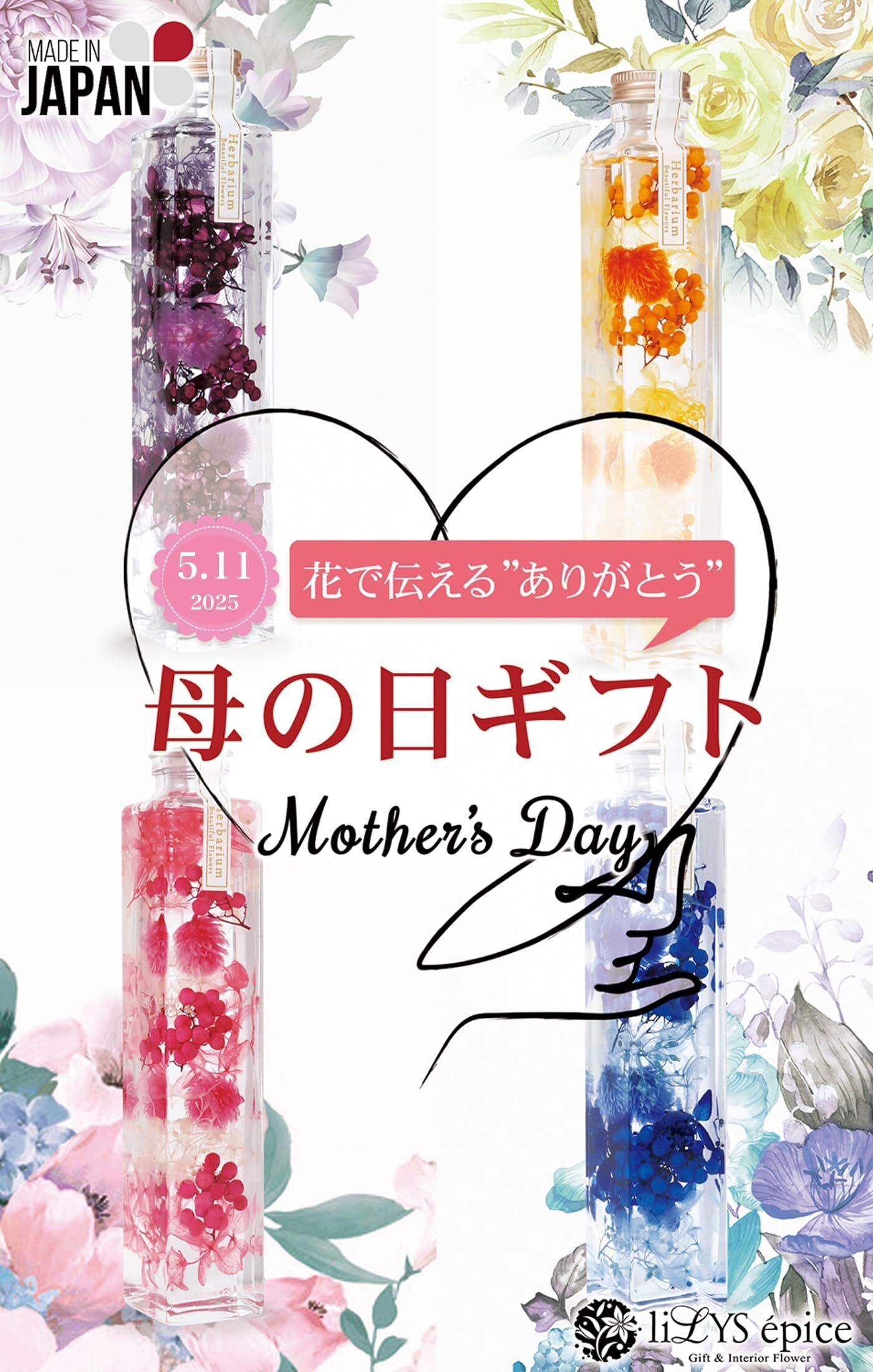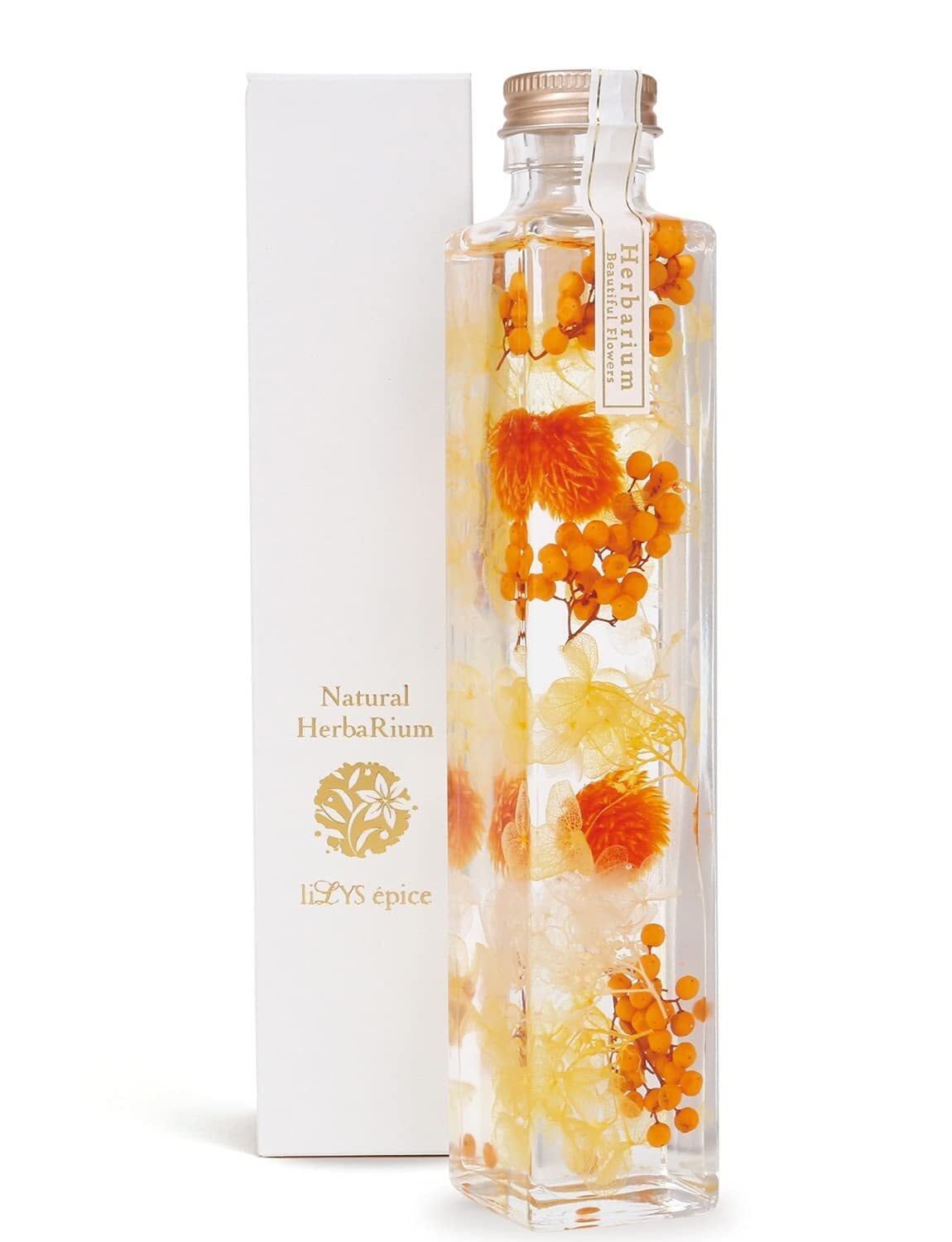 【 liLYS épice 】リリスエピス 贈り物 2025 ハーバリウム プリザーブドフラワー フラワーギフト プレゼント スクエアボトル 日本製 (マンダリンオレンジ) sh1or