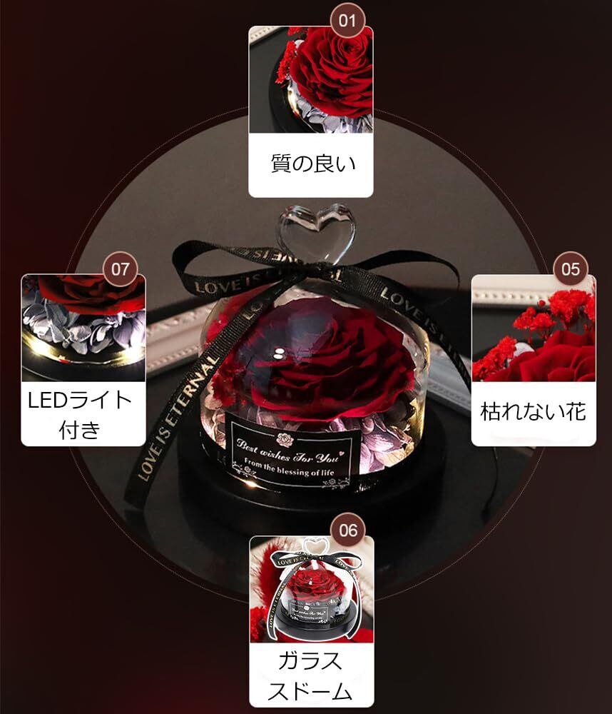プリザーブドフラワー バラ LEDライト付き ガラスドーム 1輪 ローズ 贈り物 手作り フラワーギフト バラ プレゼント 誕生日 記念日 プロポーズ 結婚祝い 誕生日プレゼント 退職祝い フラワーギフト ホワイトデー | kki
