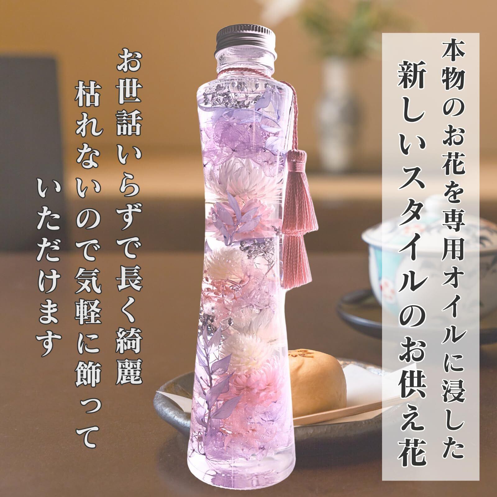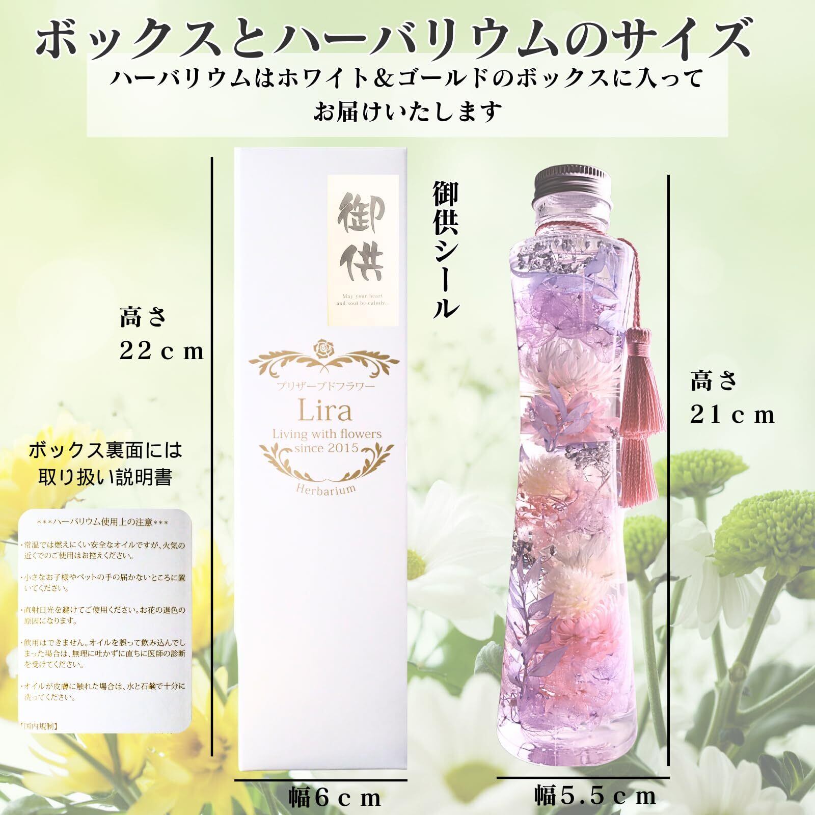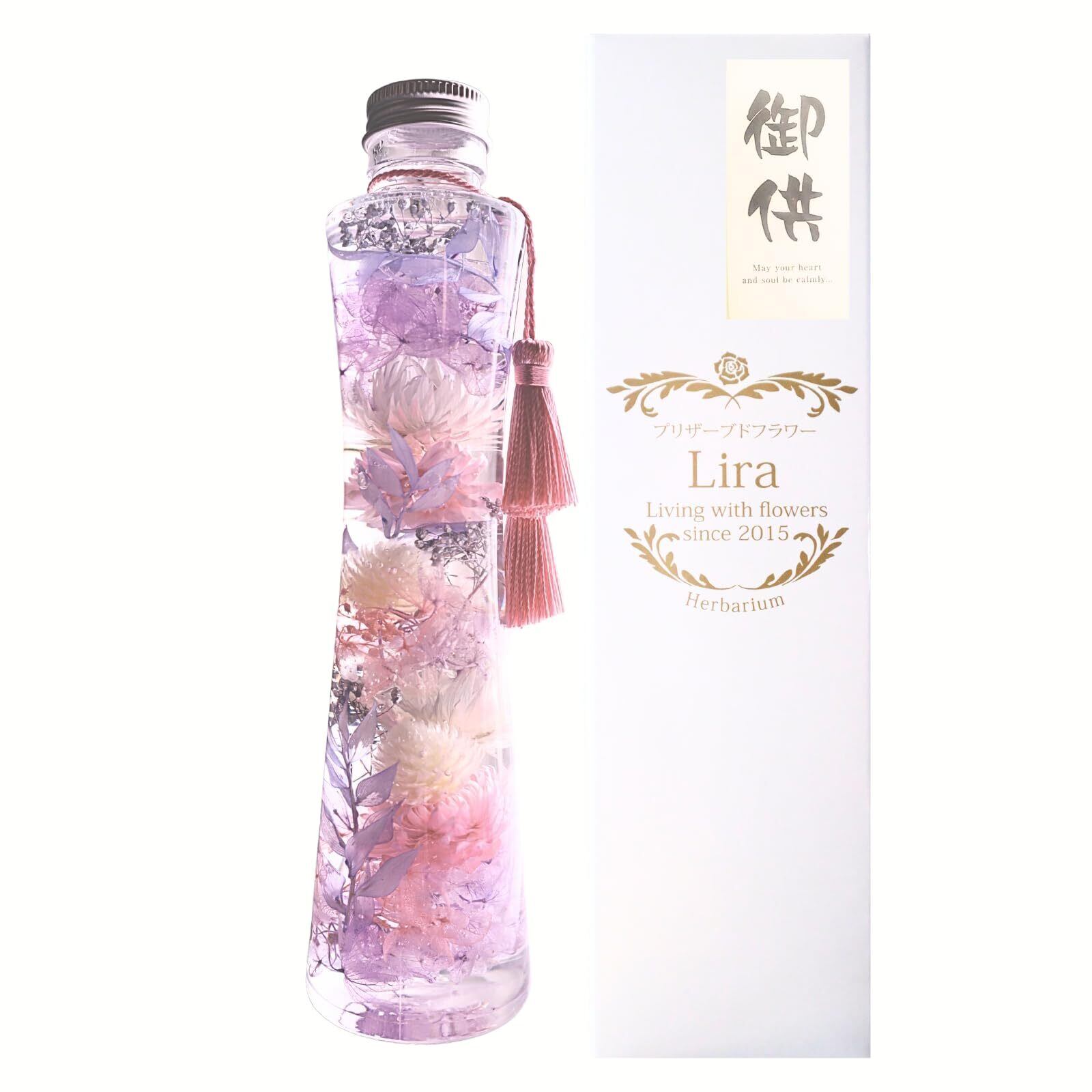 プリザーブドフラワーLira ハーバリウム お供え 仏花 お悔やみ 仏壇用 日本製 枯れない花 高さ21㎝ (薄紫・薄ピンク)