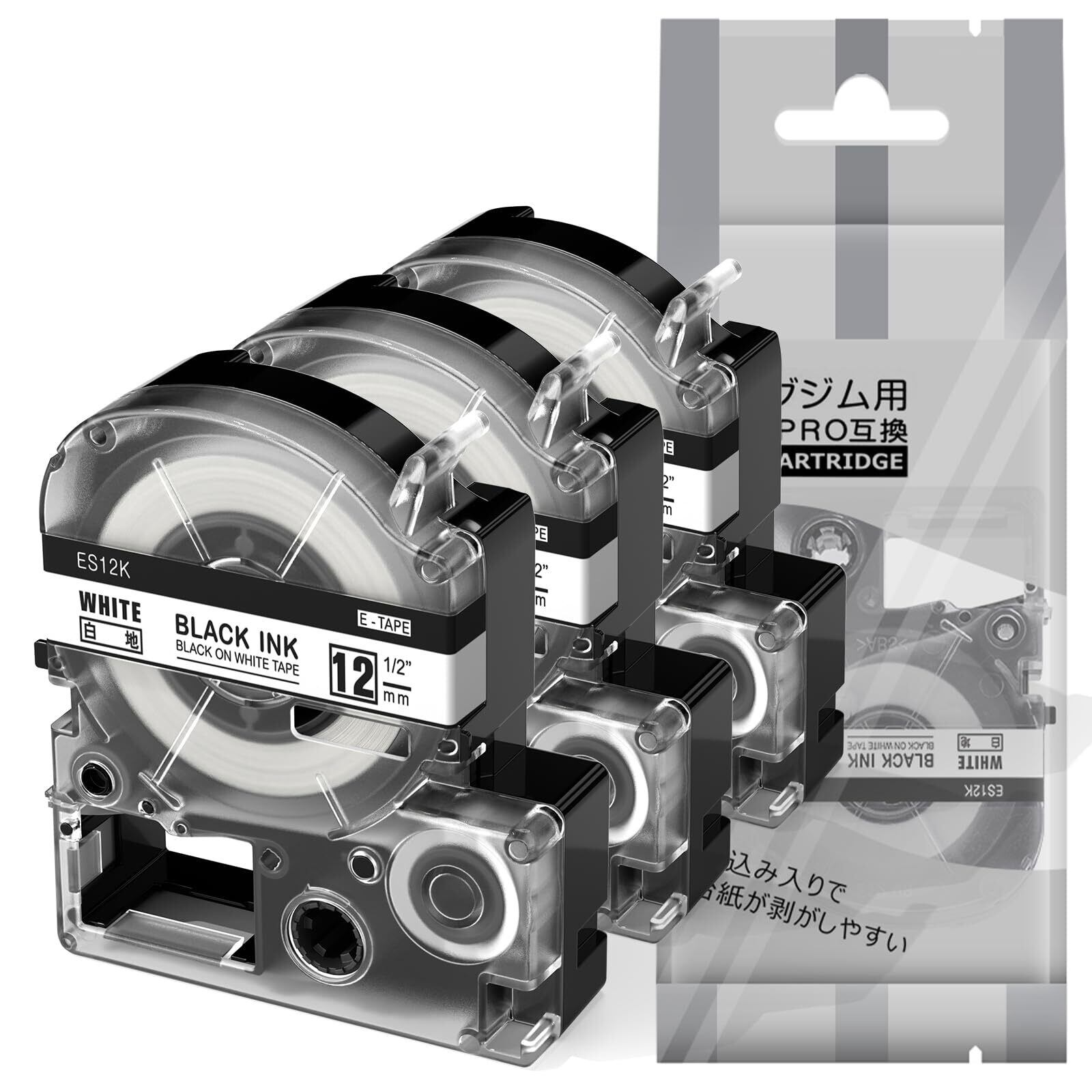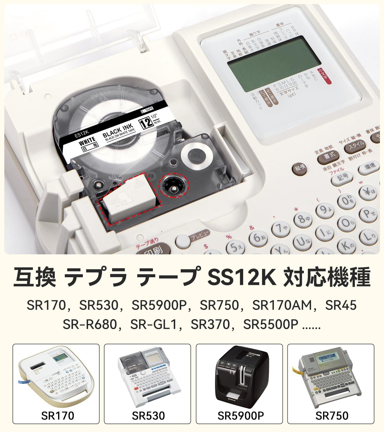 互換 テプラ テープ 12mm 白 テプラPROテープカートリッジ 3個 12mm 白 SS12K 白ラベル/黒文字 長さ8m キングジム テープカートリッジ