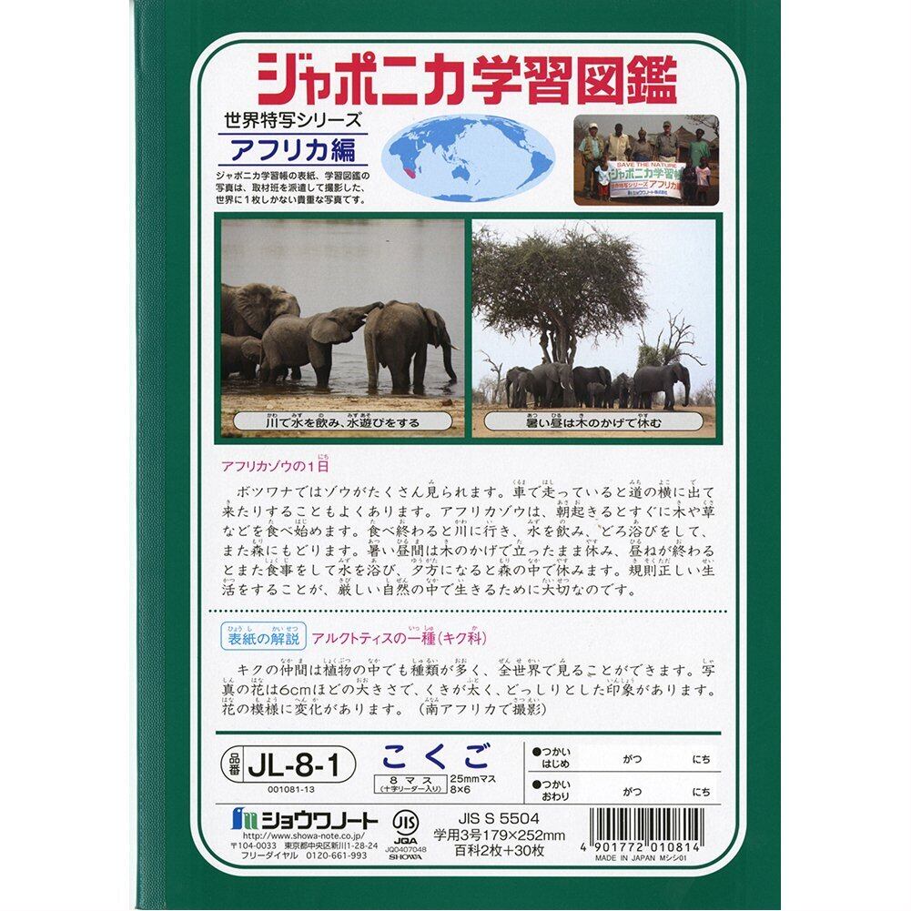 ショウワノート 学習帳 ジャポニカ 国語 8マス 十字補助線入り B5 5冊パック JL-8-1*5