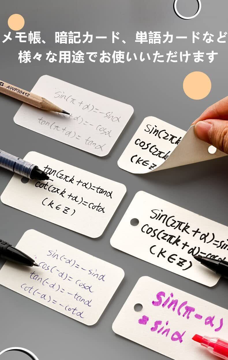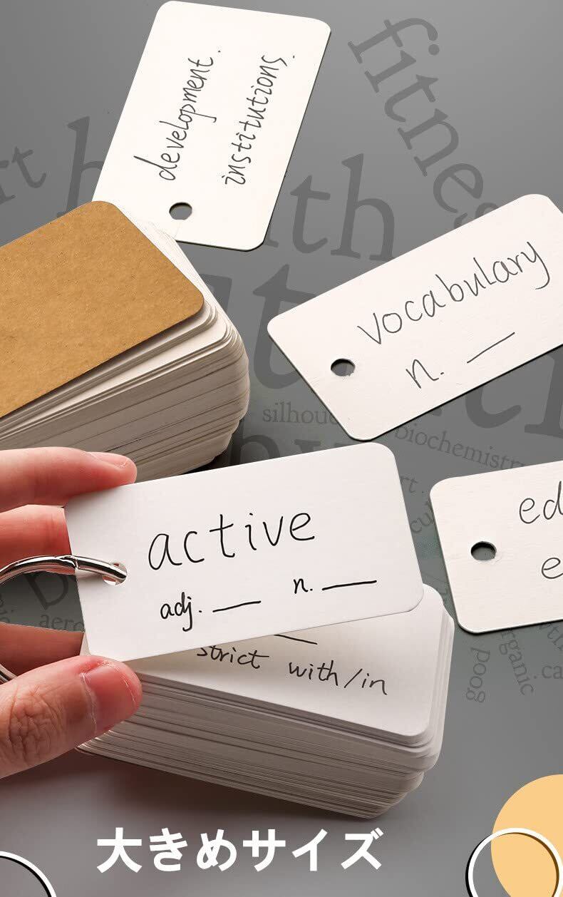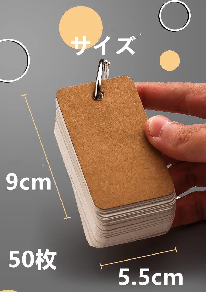 単語帳 単語カード 暗記カード 大きめ リング 英語 中学 学習帳 テスト 単語帳 メモ帳 暗記効率アップ 漢字 試験 検定50枚×5冊250枚 (白い)