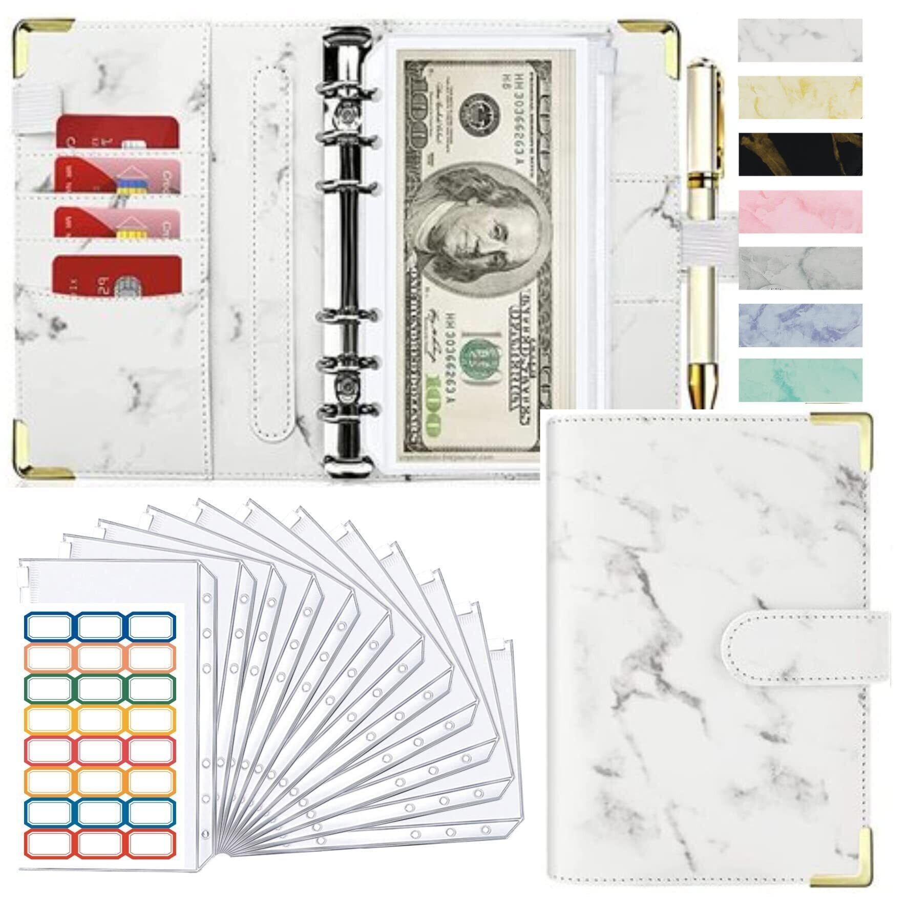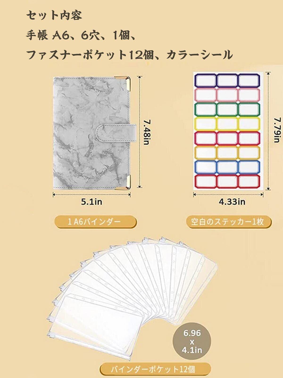 家計簿 家計管理 ポーチ予算バインダー 手帳 A6 予算管理 バインダー 家計簿手帳 ポーチ ケース ホワイト A6