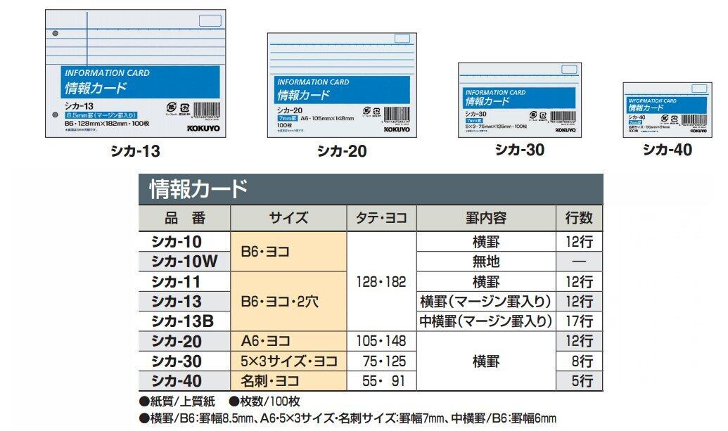 コクヨ(KOKUYO) メモ帳 情報カード 横罫 B6横 2穴 100枚 シカ-13