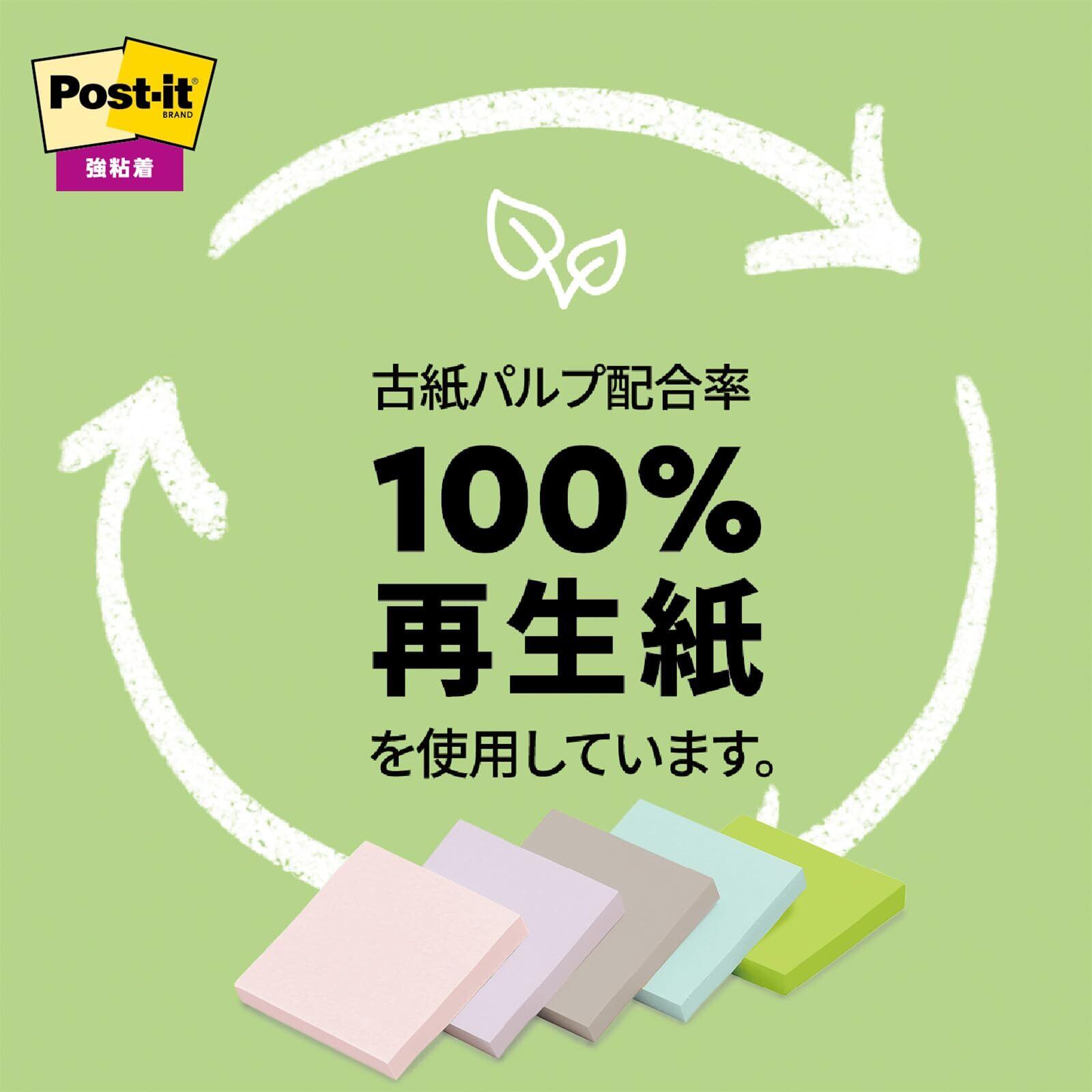 3M ポストイット 付箋 強粘着 細い 小さい 再生紙 パステルカラー 50×15mm 90枚×5パッド 700SS-AP2 エコマーク認定商品 グリーン購入法適合