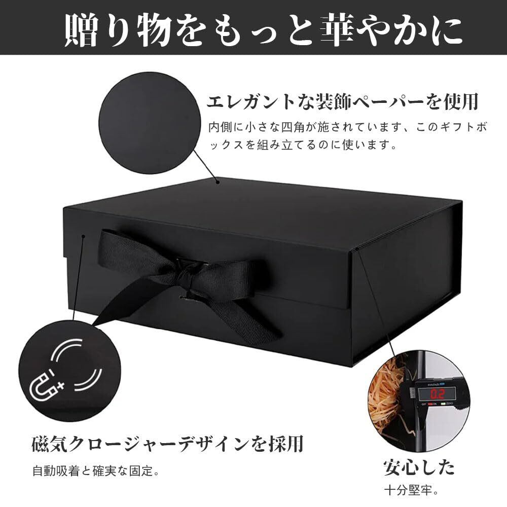 LIKENNY プレゼントボックス 飾り 高級 大容量 蝶結び gift box 長方形 包装 贈り物 結婚式 ラッピング プレゼント用品 装飾 ギフトボックス (ブラック)