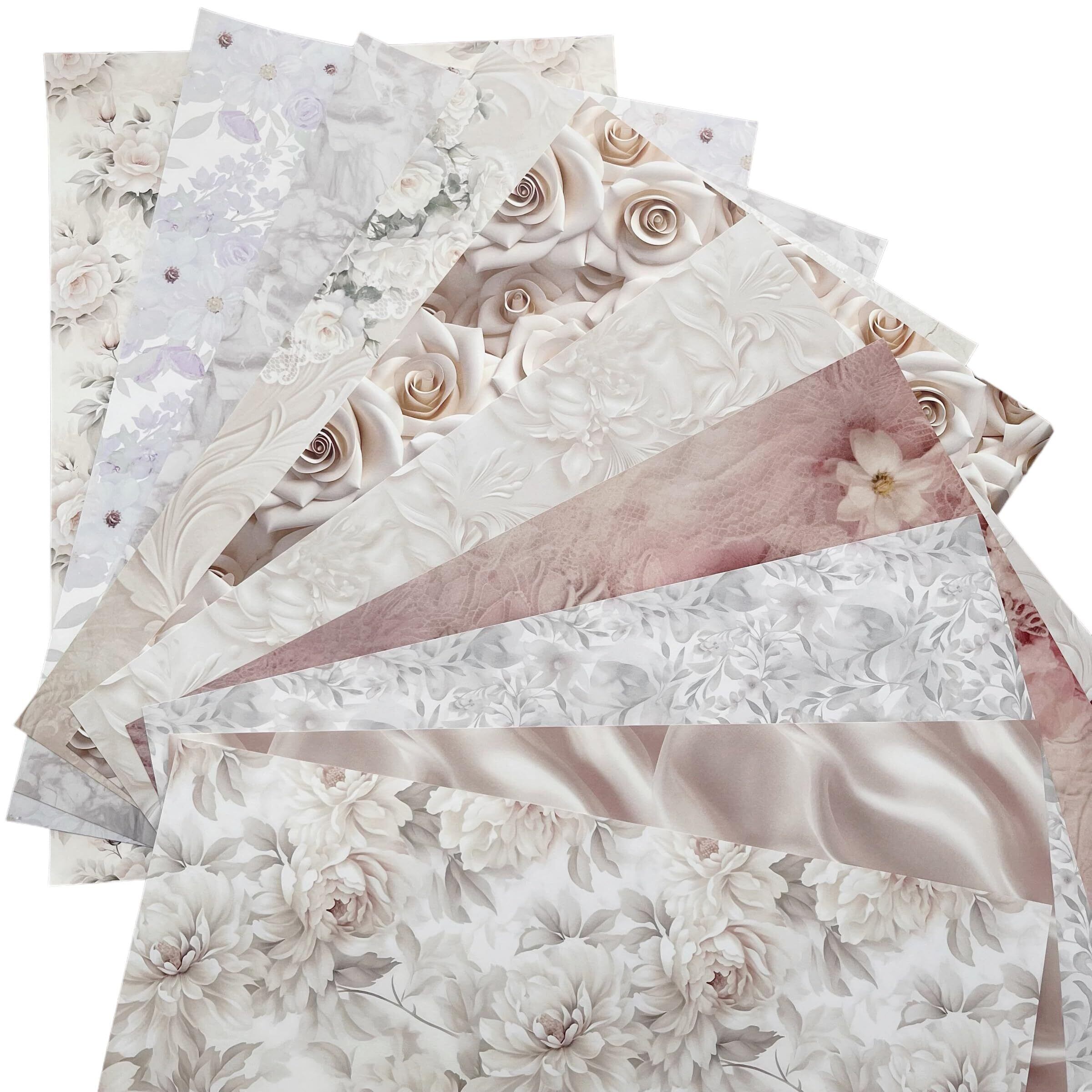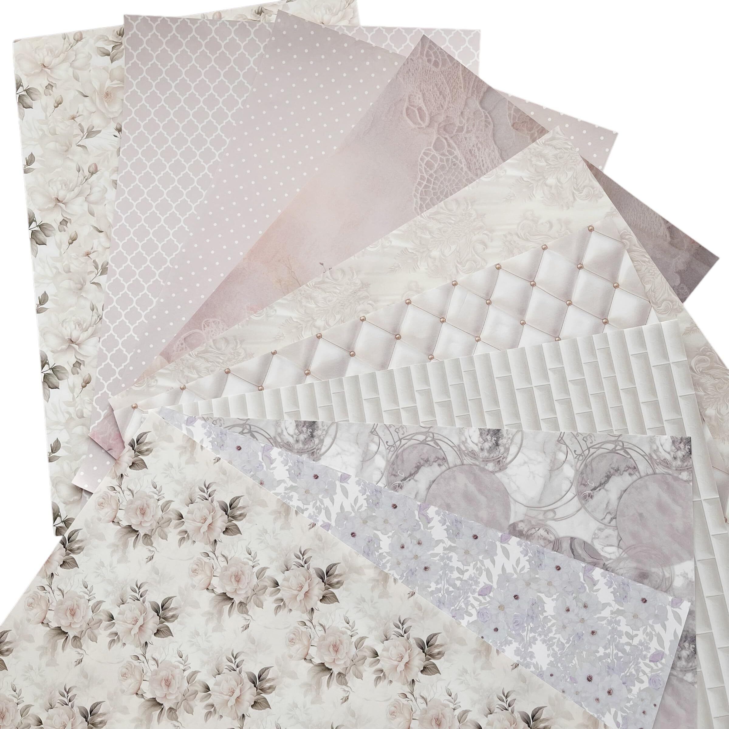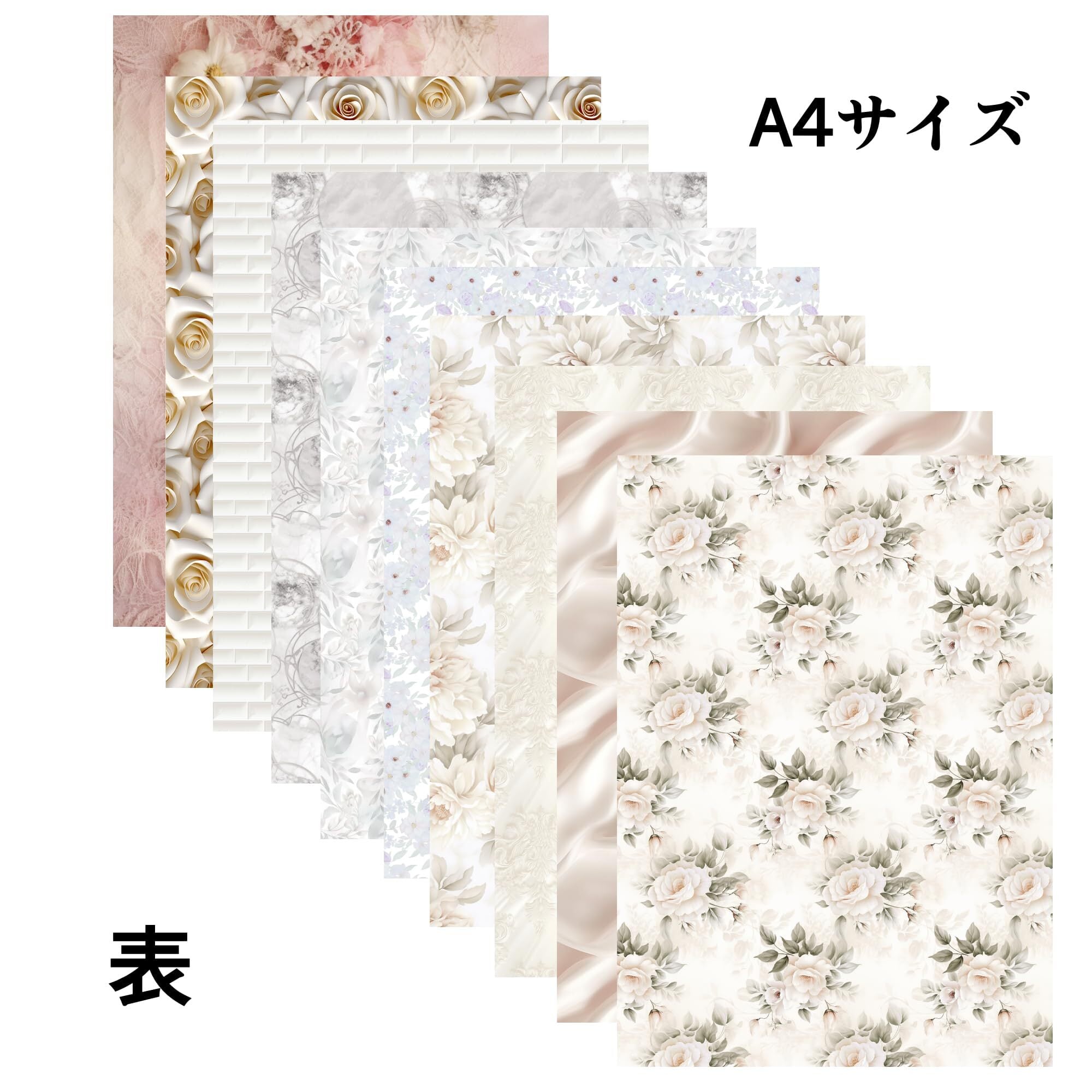 TOHYAN A4 両面デザインペーパー ホワイト系柄 上質紙90 デザぺ 包装紙 10柄50枚入 日本製 カラー デザイン用紙 コラージュ ラッピングペーパー フラワー 可愛い おしゃれ ハンドメイド ウエディング | kki