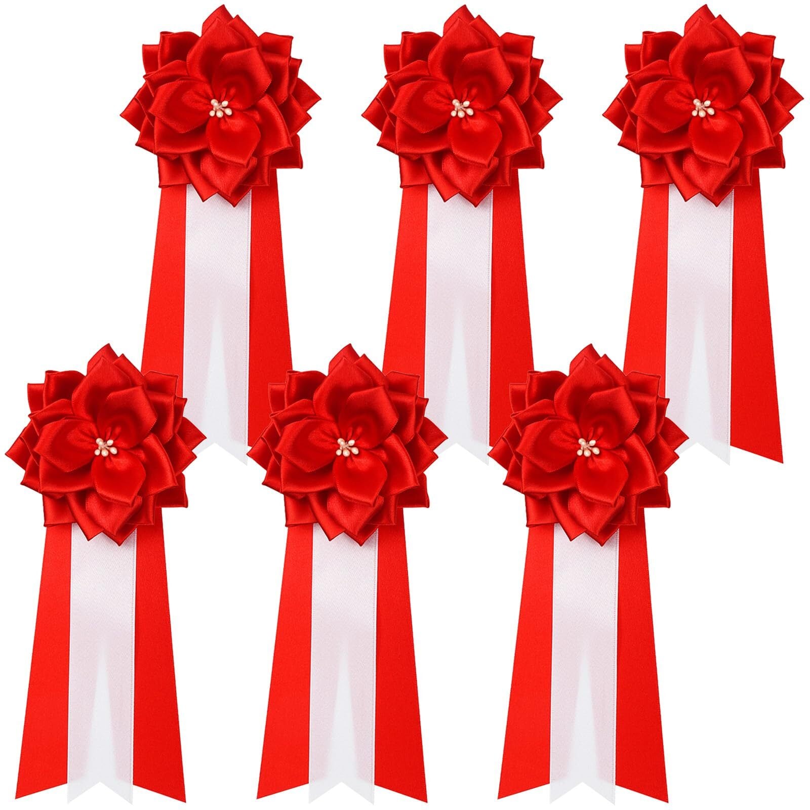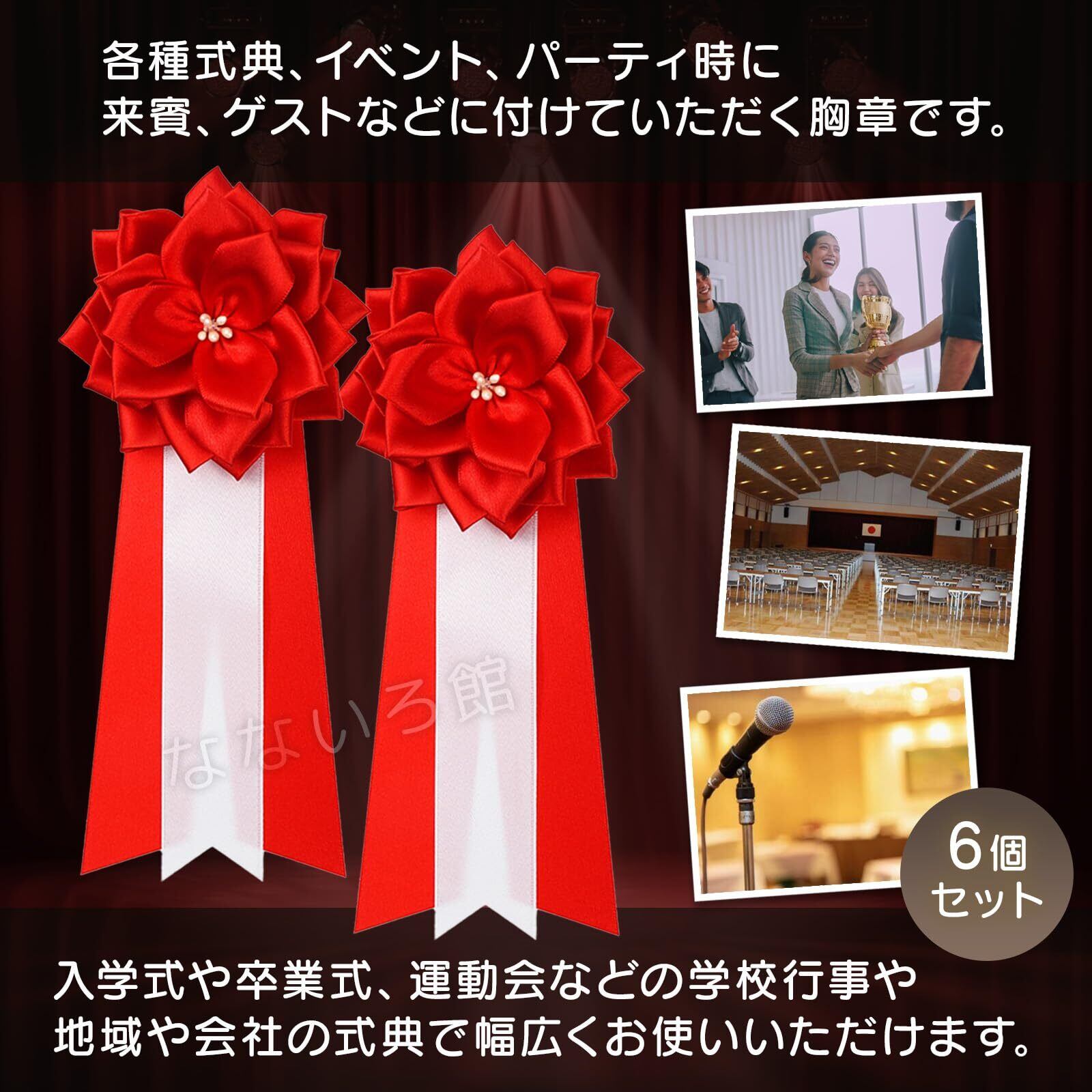[なないろ館] リボン記章 6個セット 赤 胸章 徽章 式典 イベント パーティ 来賓 ゲスト 行事 入学式 卒業式 セレモニー (中)