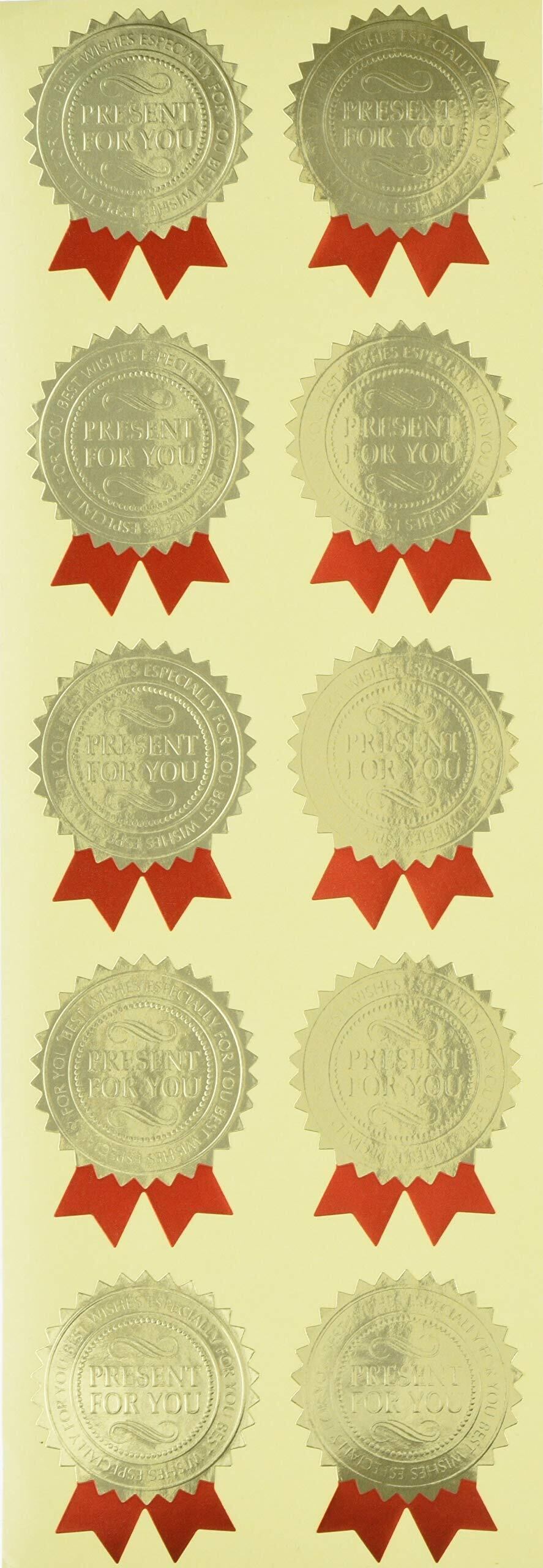 ヘッズ(Heads) 日本製 ギフトシール リボン型 ゴールド レッド W41×H51mm S ホイル紙 金ツヤアリ 100枚 HEADS SG-4