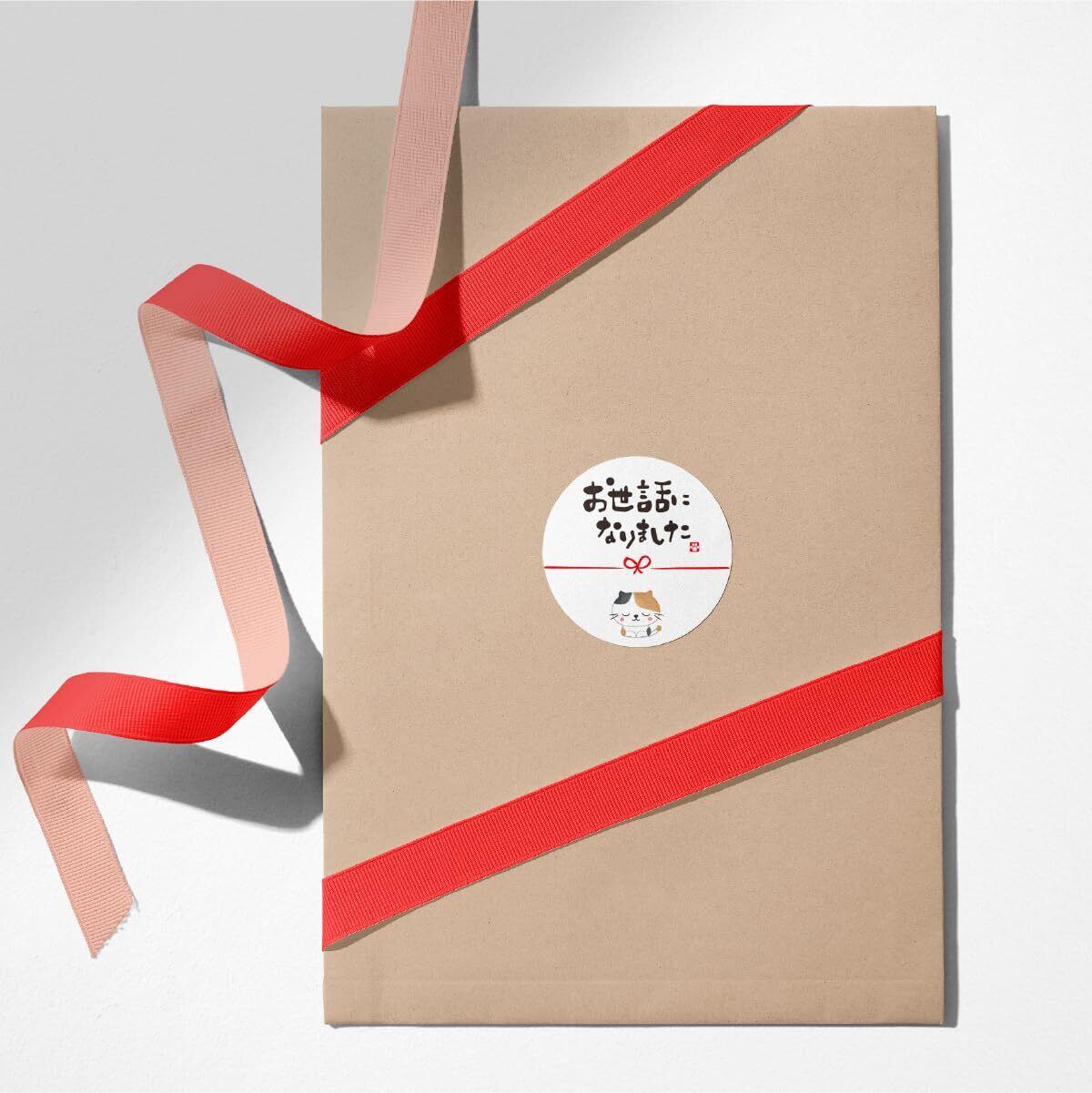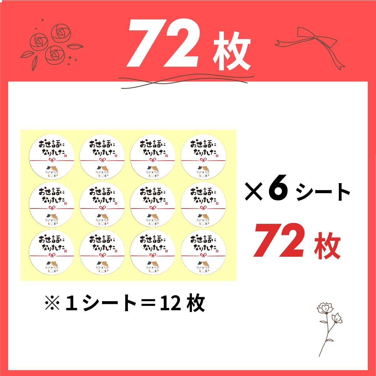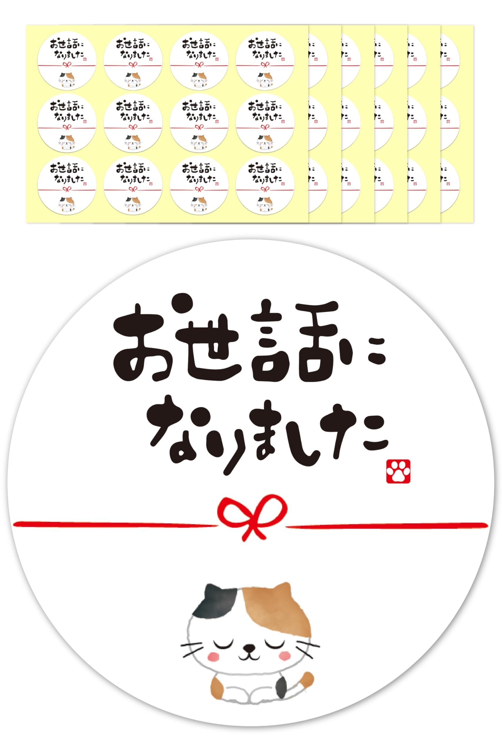 お世話になりました シール 三毛猫 72枚 4cm 引っ越し 水引 ギフト メッセージ ラッピング
