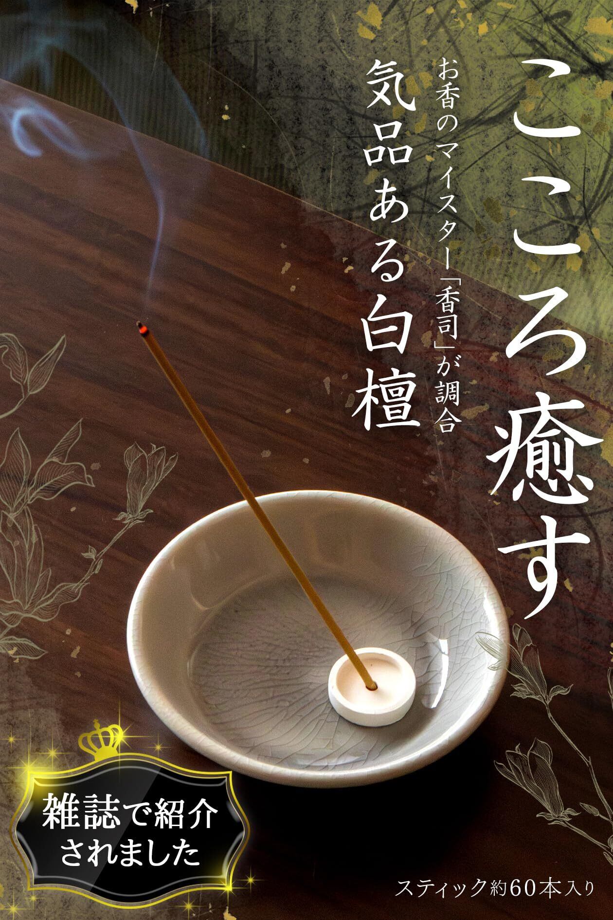 【少し贅沢な香りの癒し】お香 白檀 線香 約60本入 日本製 天然由来 淡路島産 サンダルウッド インセンス お香立てなし プレゼント 贈り物 ギフト 母の日 敬老の日【長さ:約13.5cm / 燃焼時間:約30分】 | kki