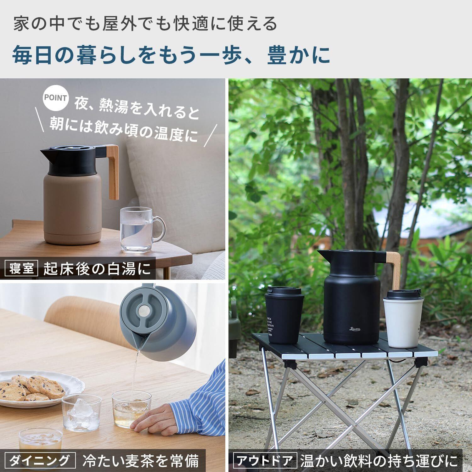 Rivers (リバーズ) サーモ ジャグ キート 保温ポット (洗いやすい/広口/保温保冷) 1200ml 保冷ポット 卓上ポット 魔法瓶 保温保冷 アッシュブルー A_JG001BL
