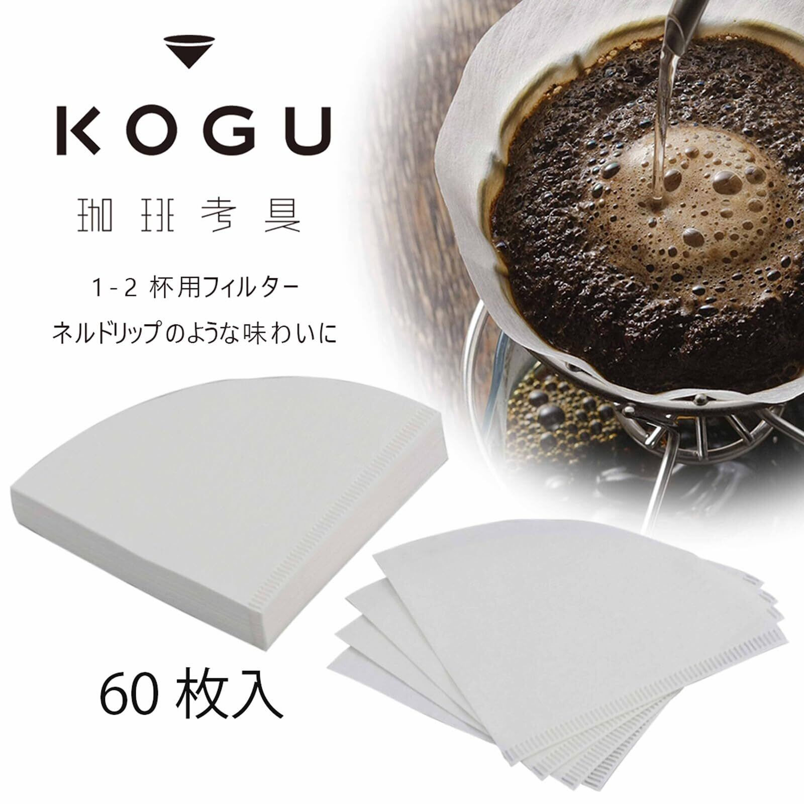 KOGU 珈琲考具 コーヒーフィルター 1~2杯用 【日本製】 ペーパーフィルター 円錐 コットン配合 紙の匂い軽減 微粉軽減 60枚入り ホワイト 43451 プレゼント 誕生日 記念日 ギフト 贈り物 下村企販 | kki
