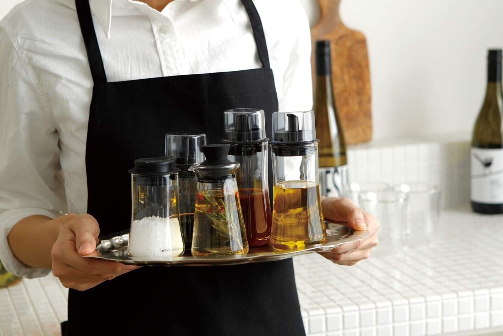 iwaki(イワキ) AGCテクノグラス 耐熱ガラス 液だれしにくい醬油差し 醤油用 120ml もれにくい フタ付き調味料入れ KT5031-BK