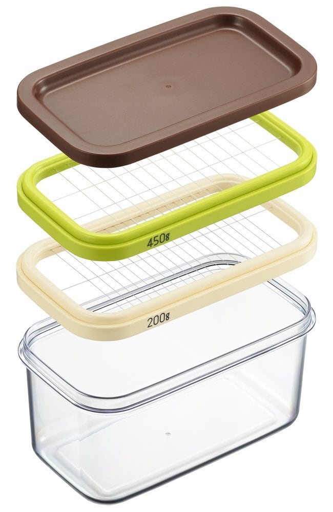 ヨシカワ バターケース バターカッター 200g・450g兼用 (200gは5gに・450gは10gにカット) そのまま冷蔵庫で保存 フタはのせるだけ ホームベーカリー 日本製 SJ2088 | kki