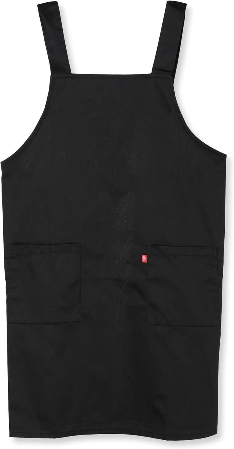 [エドウィン] エプロン 二段階調節可能な後ろ腰ボタン 無地 H型 両サイドポケット ブラック LL