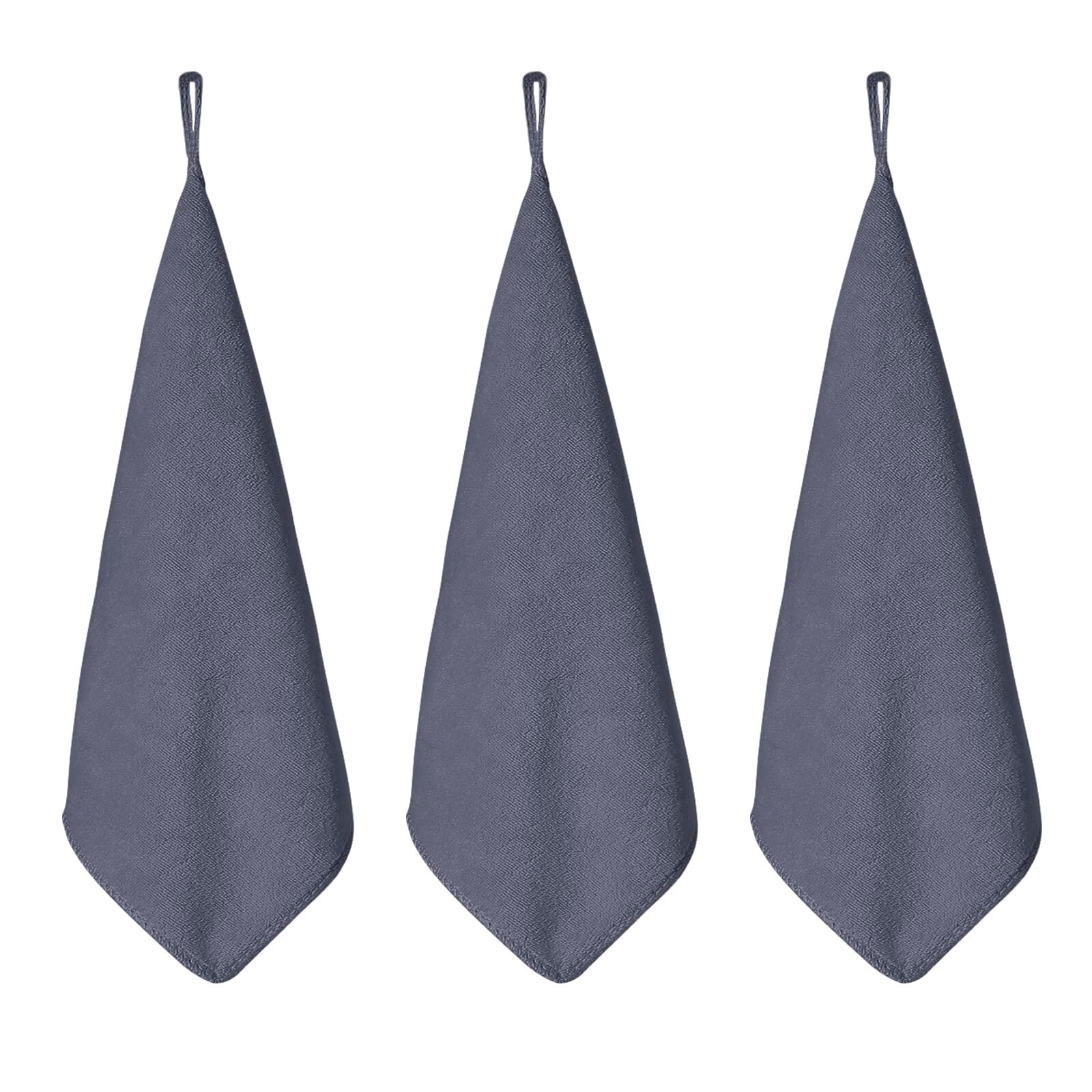 [HOOMCOOM] キッチンタオル キッチンクロス 手拭きタオル ループ付き 3枚セット 布巾 台拭き 食器拭き マイクロファイバー 厚手生地 吸水 速乾 30x30cm 防臭 衛生 抗菌 グレー | kki
