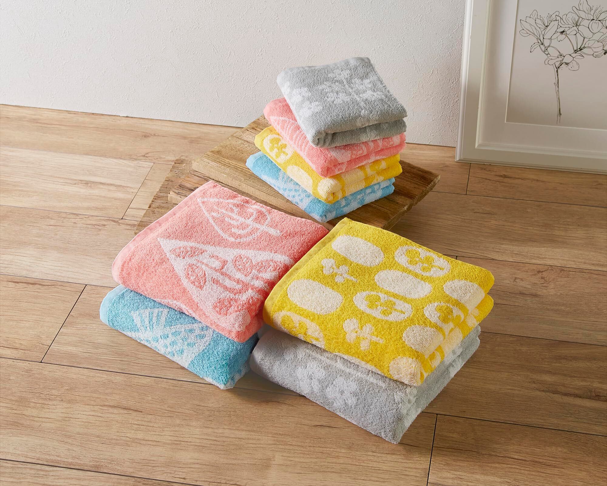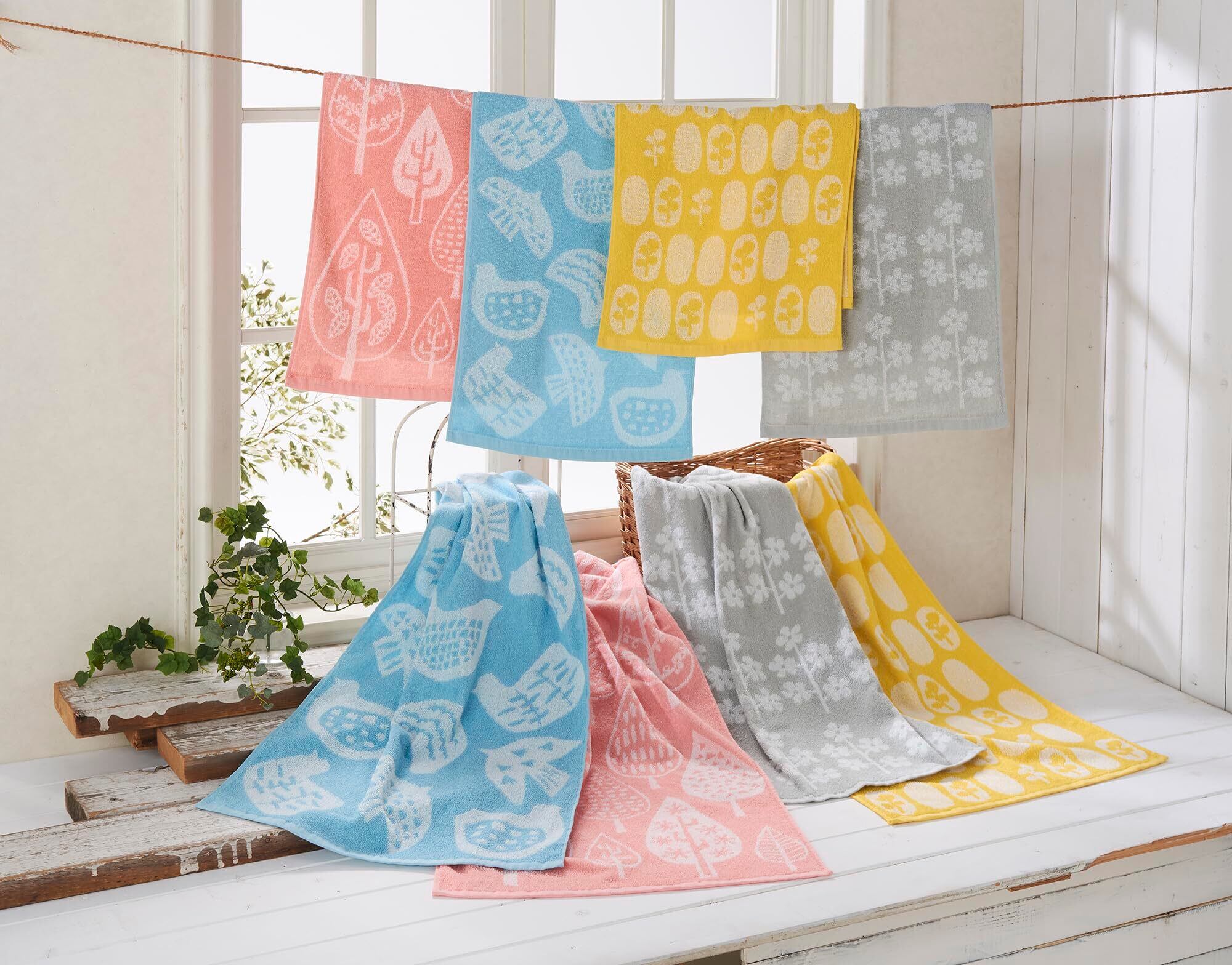Kosugizen ミニバスタオル 北欧調ジャガード マトカ ピンク・ブルー 50×100㎝ 小さなサイズのバスタオル デイリーユース 2枚セット SV-4621-2