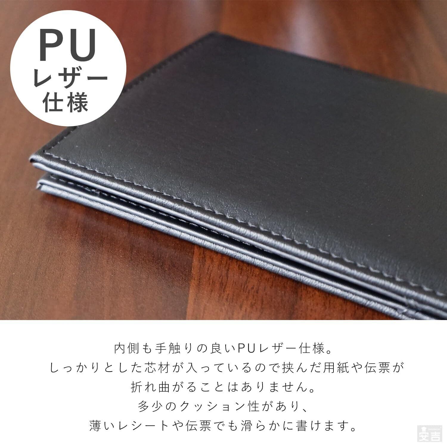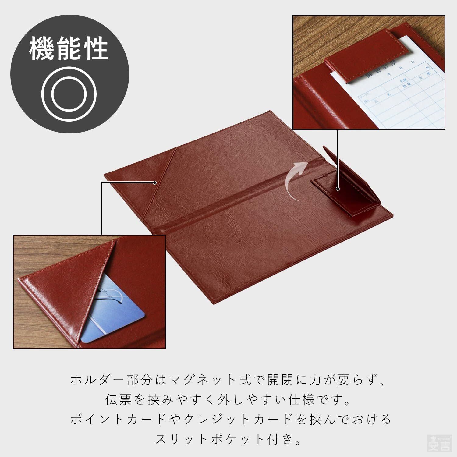 伝票ホルダー 二つ折り マグネット式 レザータッチ お会計ボード 伝票バインダー ポケット付き クリップ (ブラック/単品)