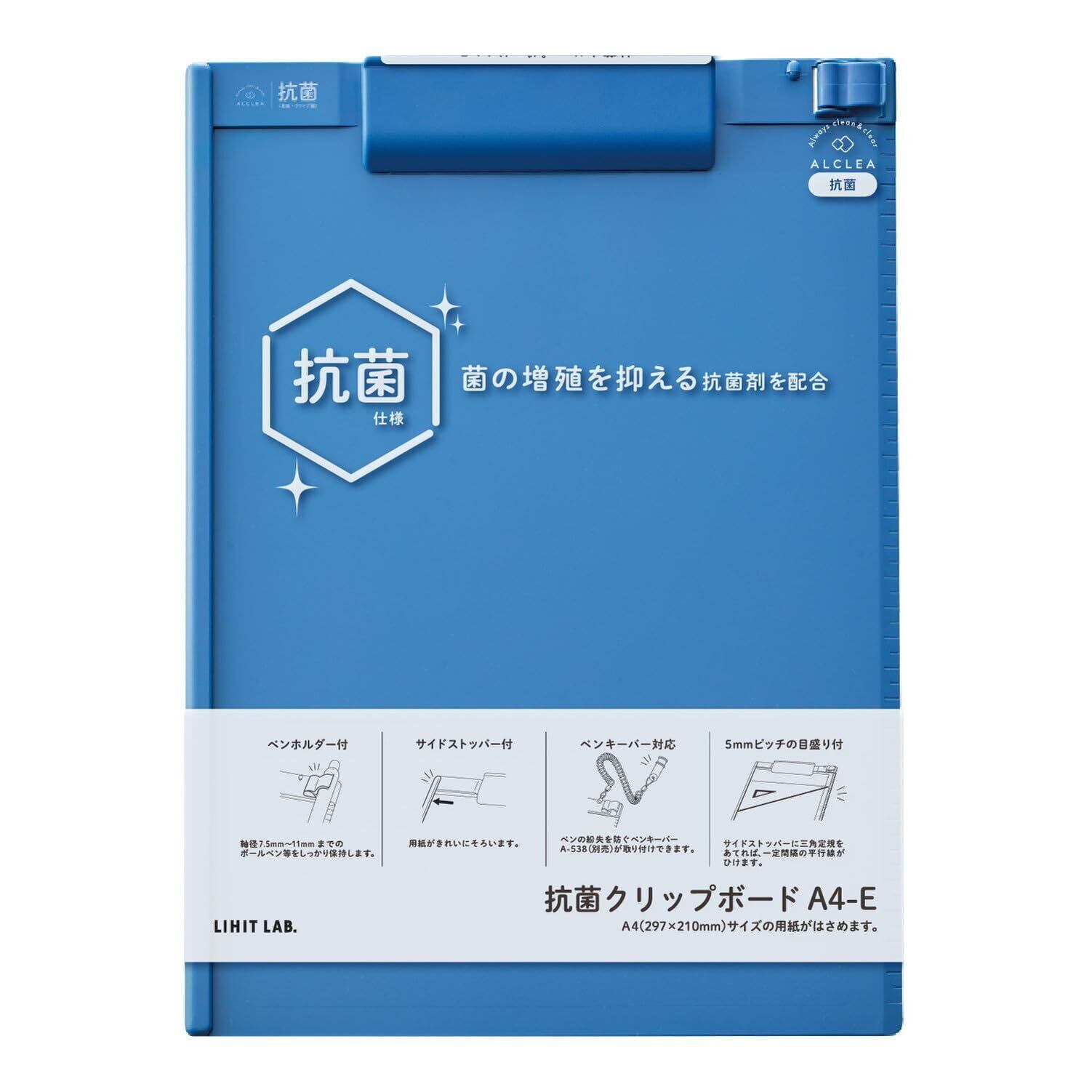 リヒトラブ バインダー 抗菌 クリップボード A4 E型 ALCLEA ブルー A7940-8
