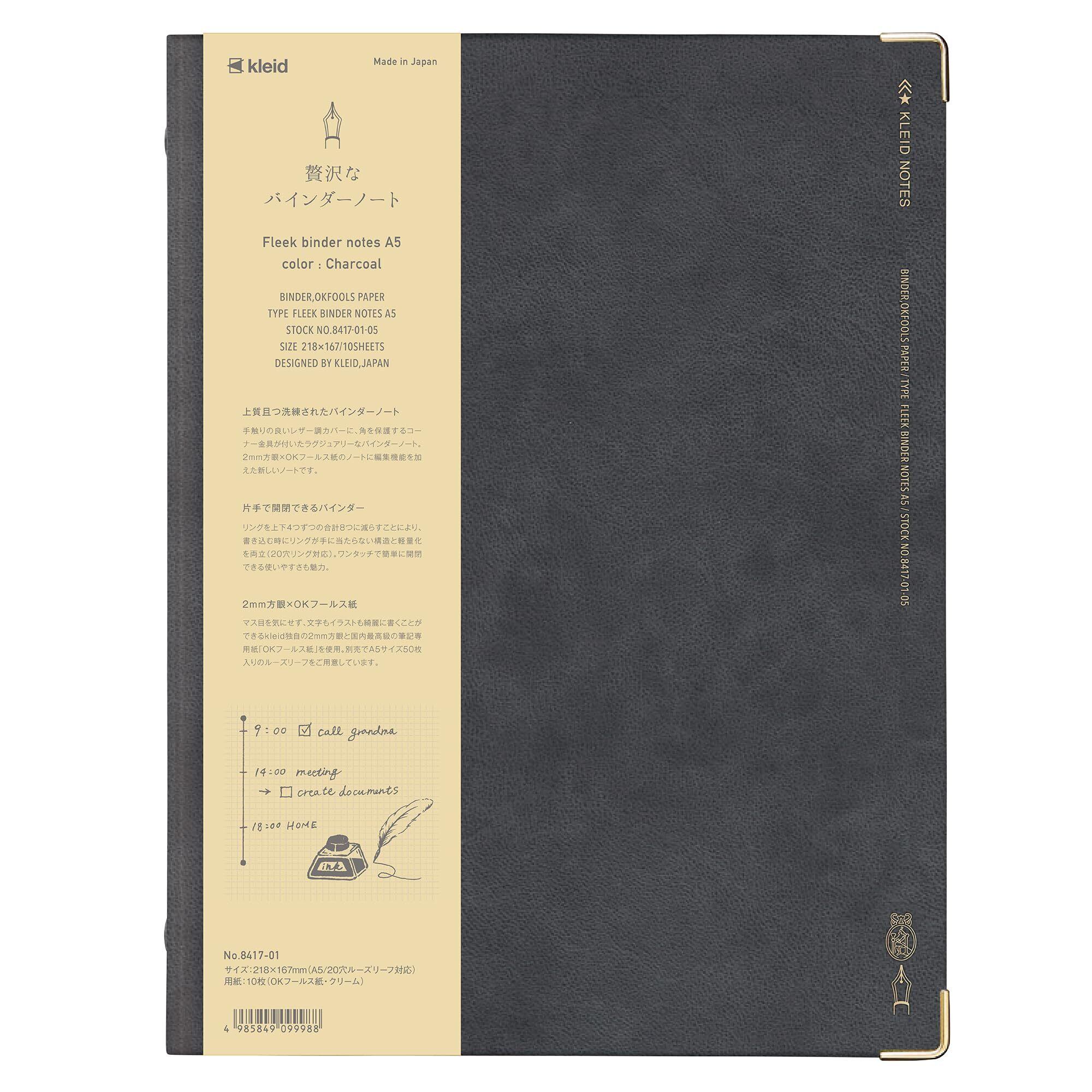 クレイド バインダー ノート フリークバインダーノート A5 2mm方眼 8穴 チャコール 8417-01