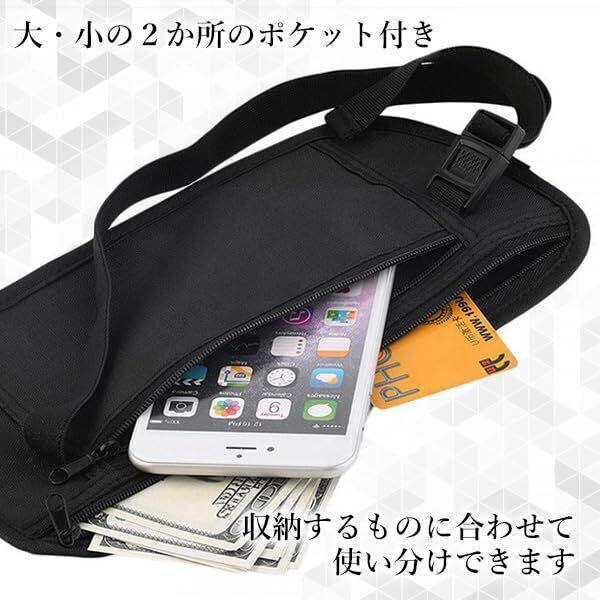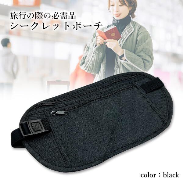 [RemarksJapan] 海外 旅行 ウエスト ポーチ シークレットポーチ【旅のプロ推薦】トラベルポーチ 薄い セキュリティ パスポート 貴重品 盗難防止 ブラック