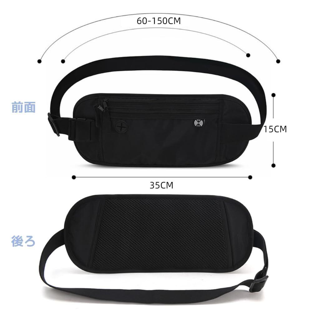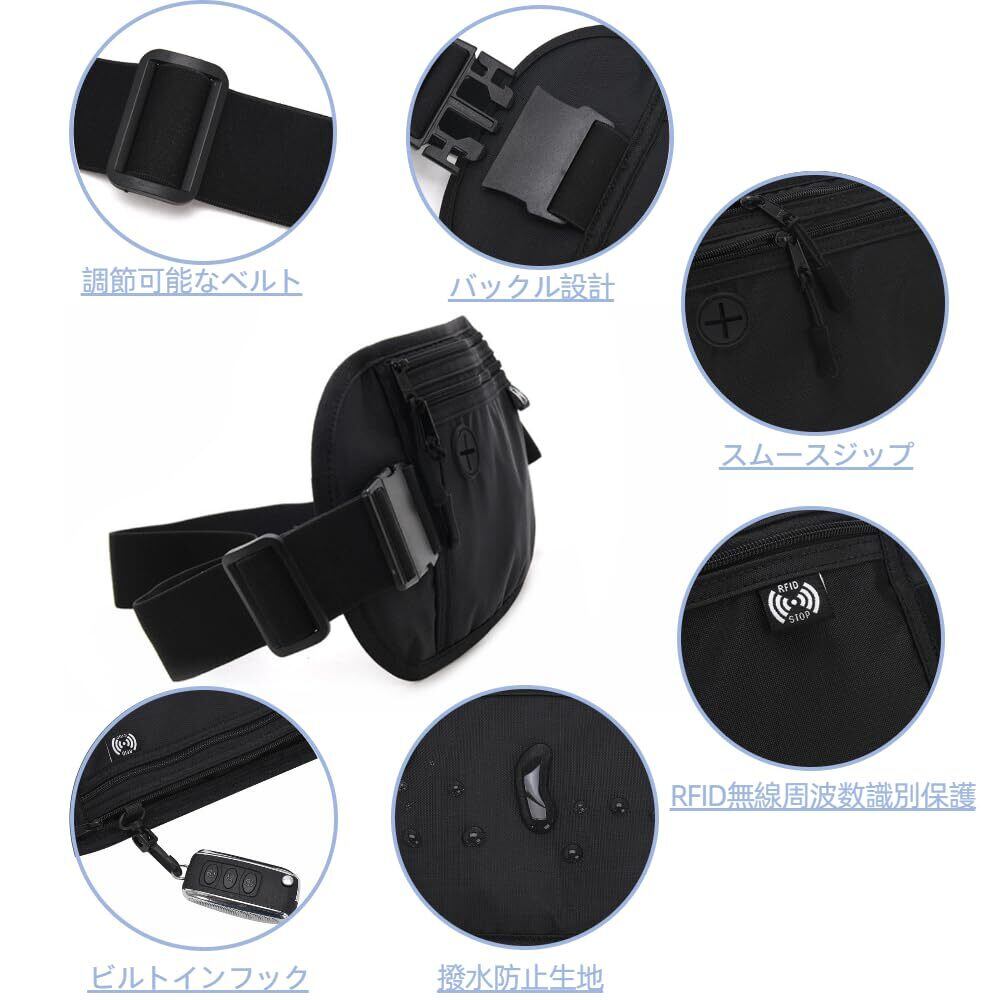 セキュリティポーチ ウエストポーチ RFID 旅行用 パスポートケース 防水 薄型 軽量 パスポートケース スキミング防止 海外旅行 バッグ 防犯 旅行便利 運動ランニング アウトドア 男女兼用 (ブラック) | kki