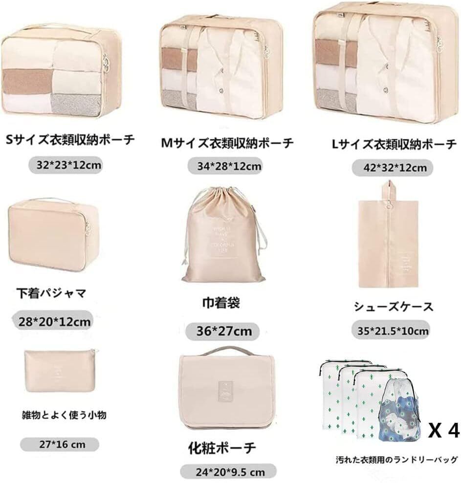 トラベルポーチ 12点セット トラベルポーチ セット おしゃれ 旅行 衣類収納 出張 整理 便利グッズ 靴用 下着収納 下着 洗面用具 シューズ 小物入れ 軽量 大容量 旅行用ポーチ (ベージュ) | kki