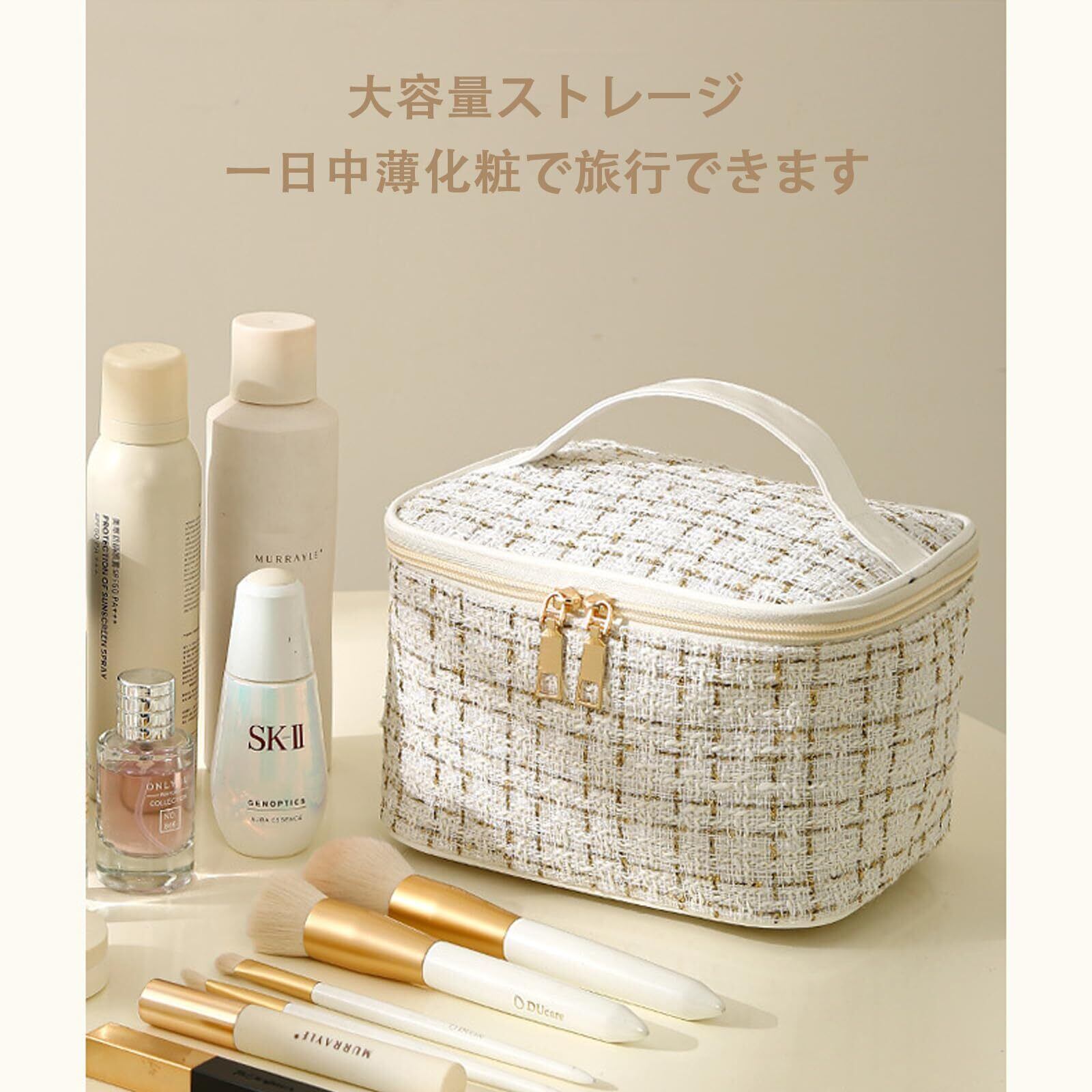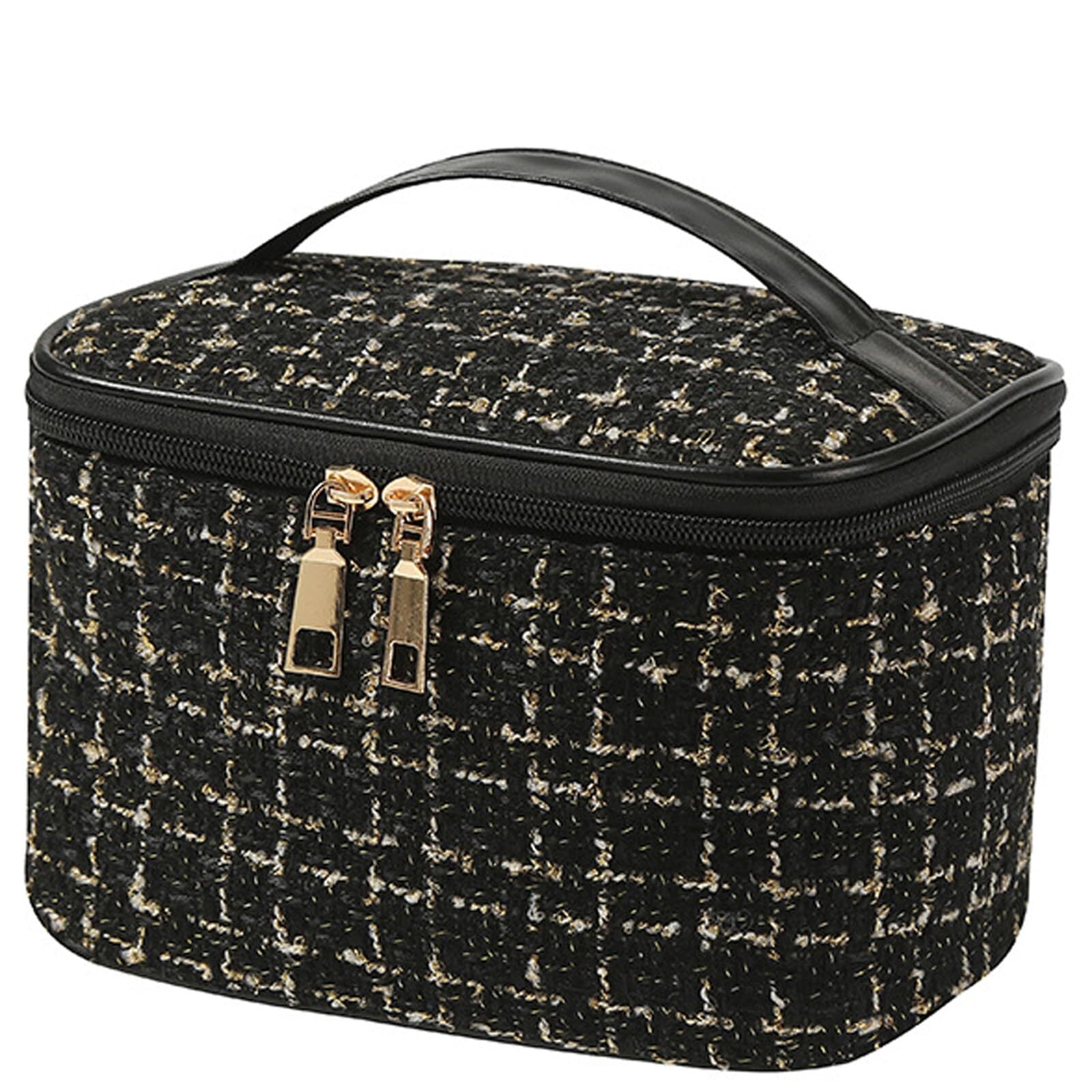 化粧ポーチ 大容量 メイクポーチ 化粧品バッグ 広口 収納ポーチ メイクバッグ 人気 多機能 手提げ メイクアップポーチ おしゃれ 旅行用 コスメ収納 携帯に便利 (Black-黒)