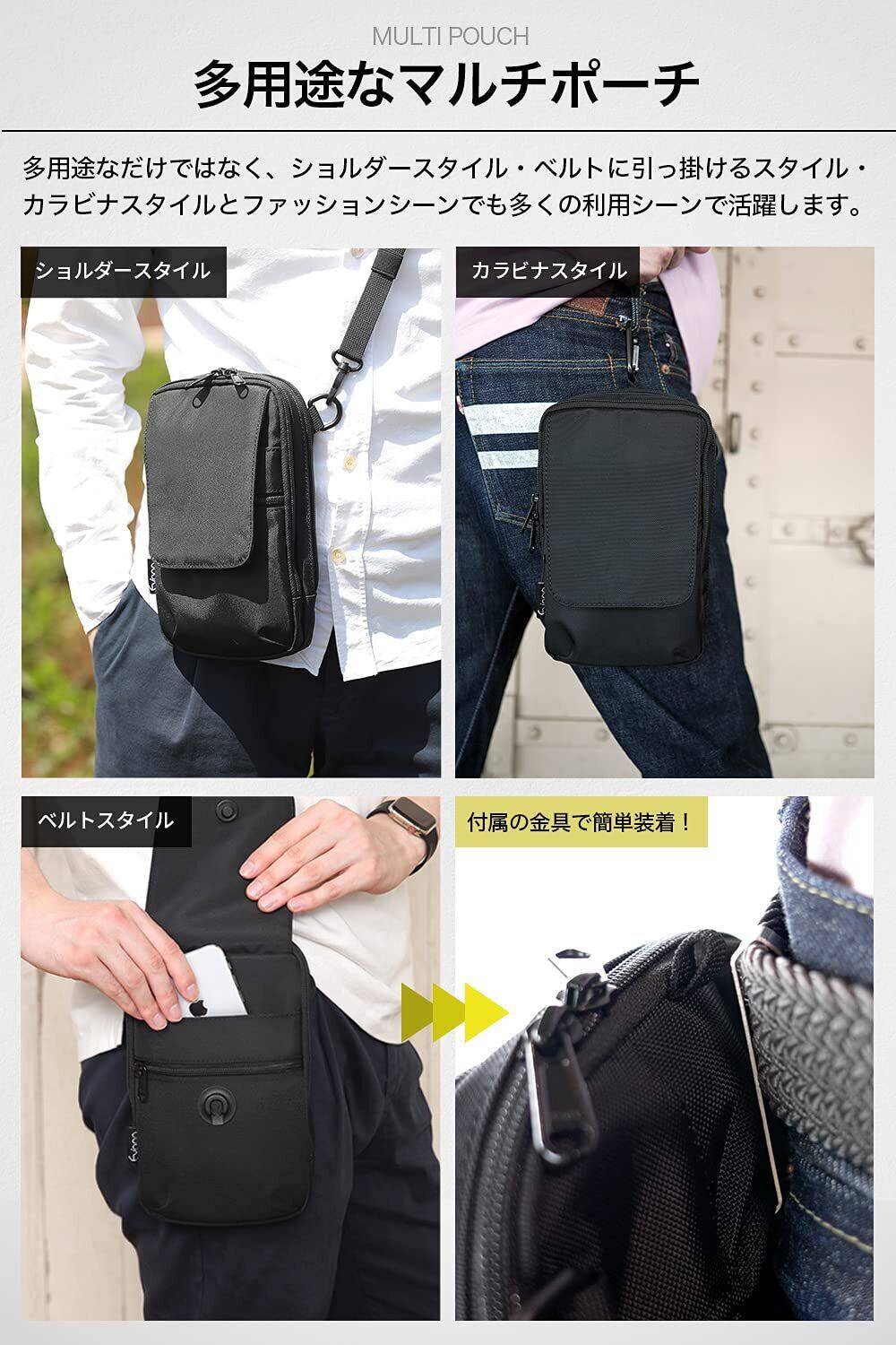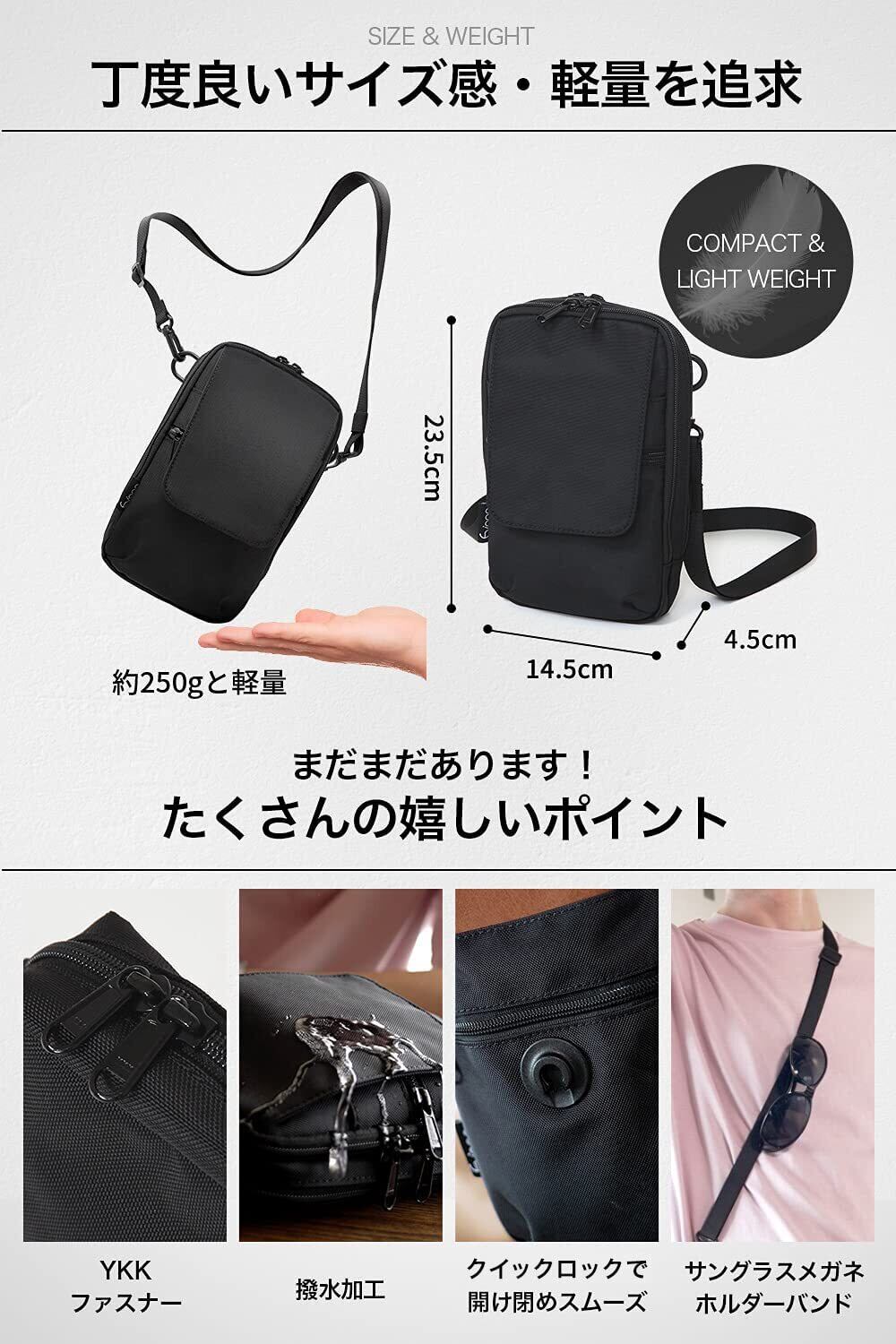 [Evoon] マルチスマホポーチ スマホポーチ ガジェットポーチ トラベルポーチ ショルダーバッグ 小物ポーチ 撥水 長財布収納可能 軽量 (ブラック)