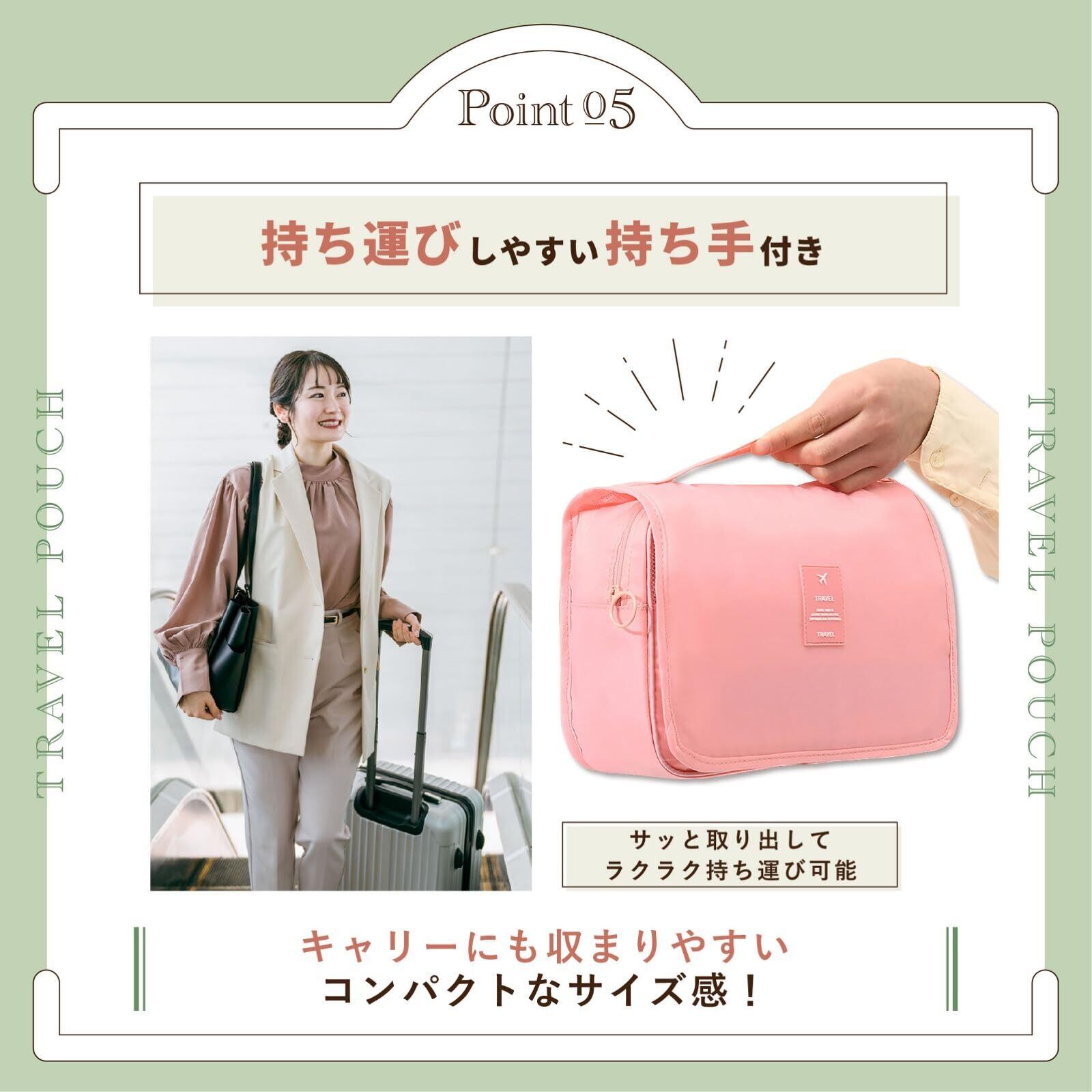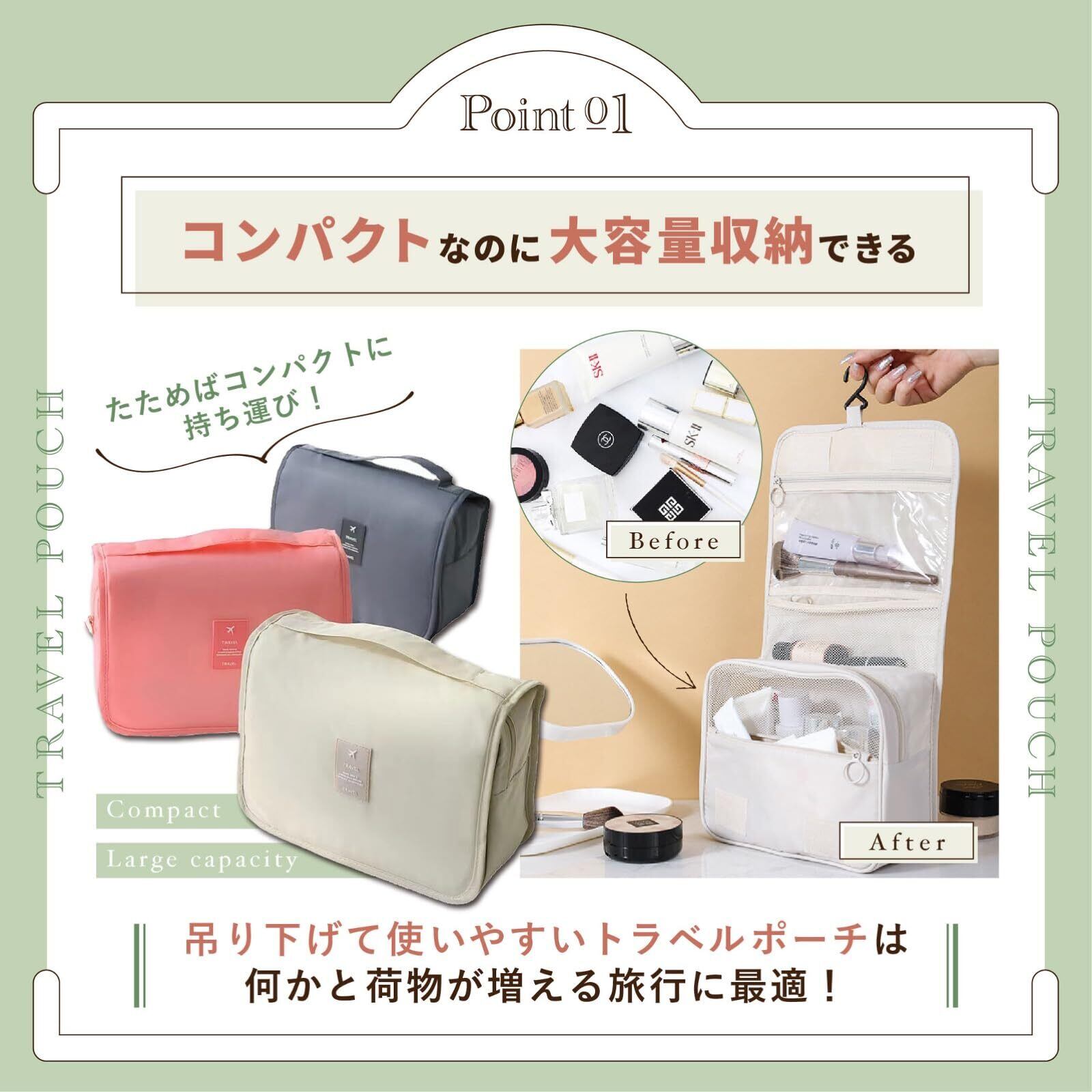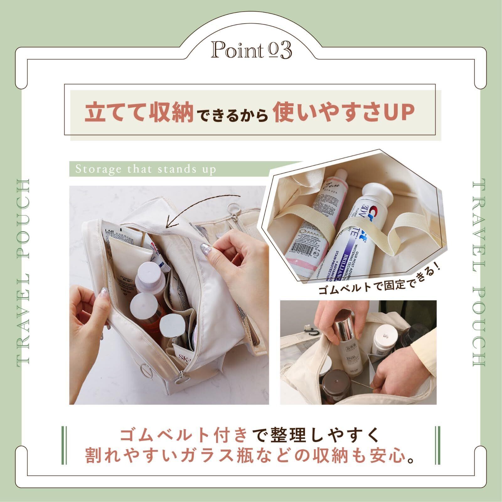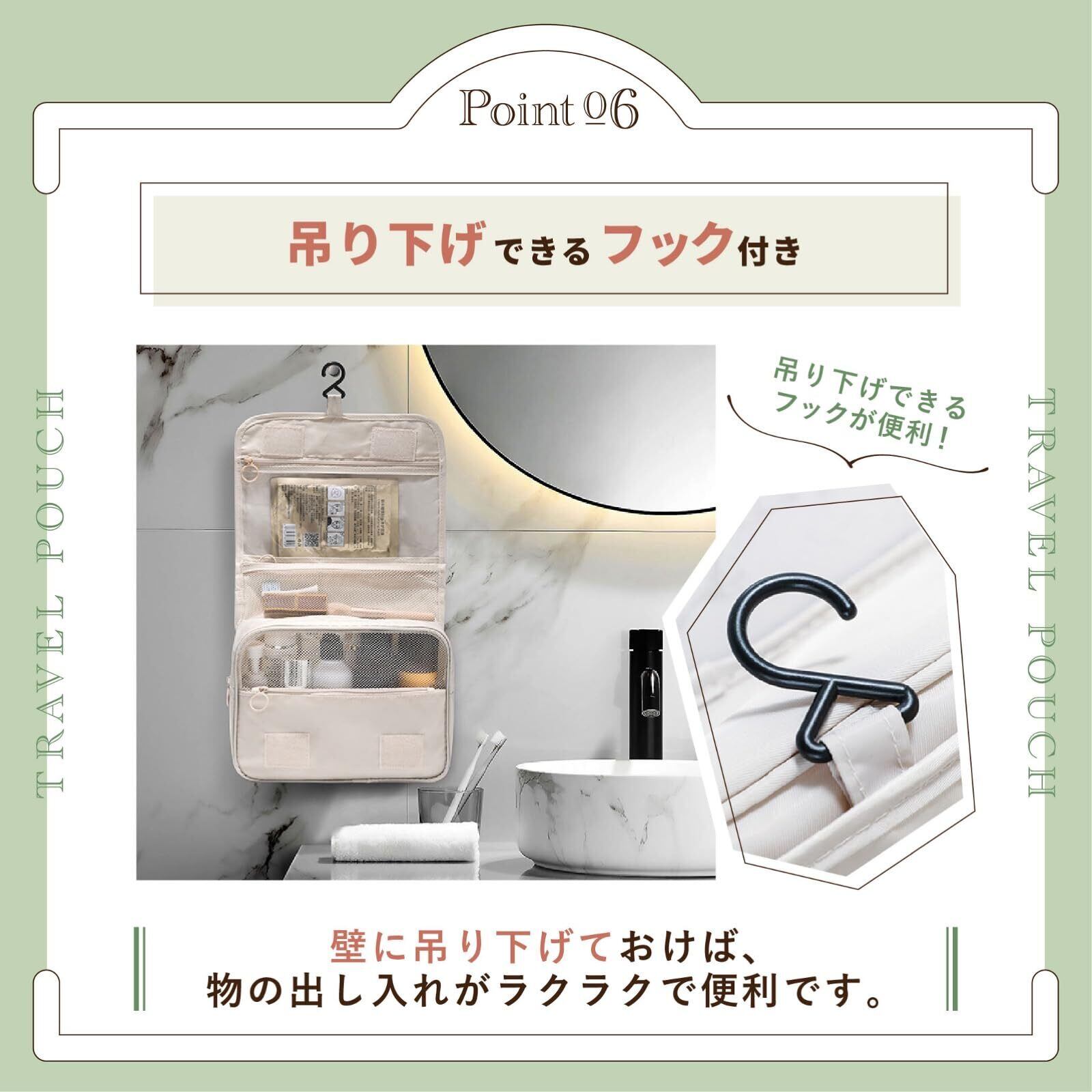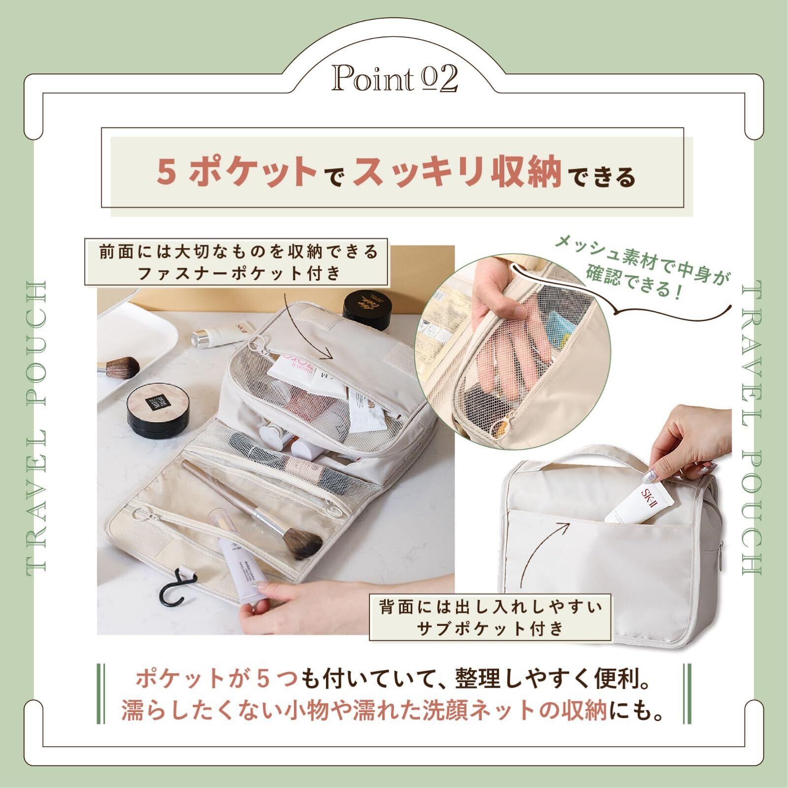 ルボナリエ トラベルポーチ 吊り下げ 大容量 収納 旅行 化粧 コスメ おしゃれ かわいい ブラック シンプル 出張 軽量 コンパクト ポケット メッシュ撥水 (ベージュ)