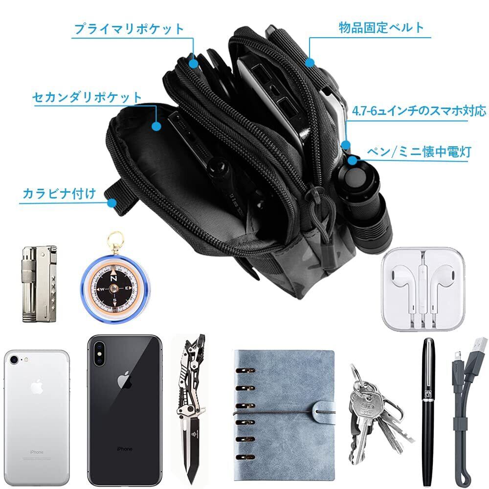 DFsucces 多機能ポーチ ウエストバッグ 携帯電話用ポケットがついたユーティリテ 仕事用 携帯収納バッグ カラビナ ナイロン ベルト掛け Molle対応